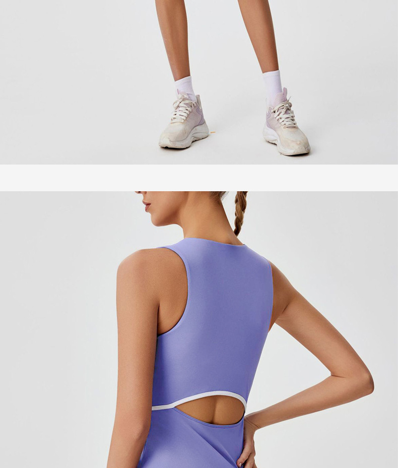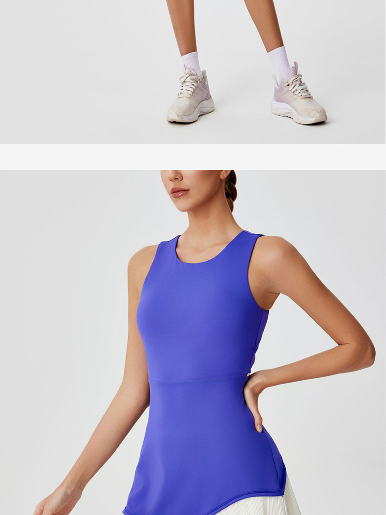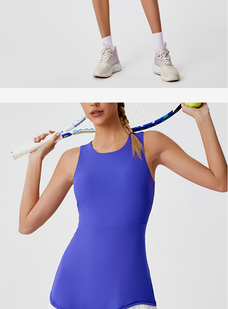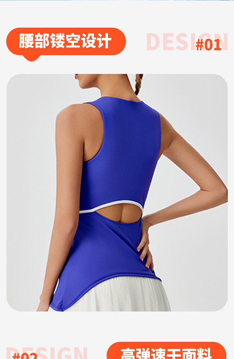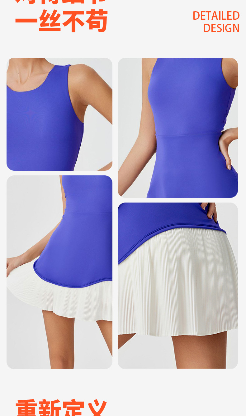 국경 간 여름 폭발 대비 색상 스티칭 주름 원피스 여성용 중공 퀵 드라이 테니스 스커트 민소매 요가 옷