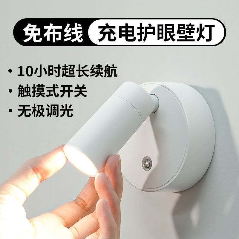 배선이 필요 없는 충전식 벽 램프, 무선 자기 스포트라이트, 야간 조명, 펀치 없는 침실 머리맡 독서등, 벽 램프스토어 가기