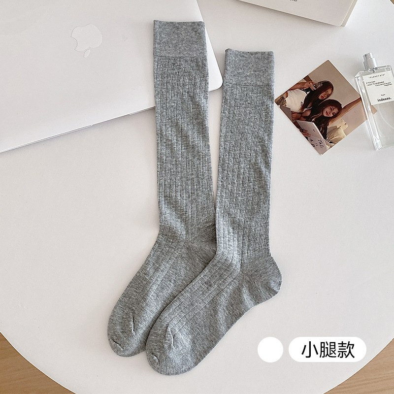 회색 송아지 양말 여성 봄과 여름 얇은 압력 스키니 다리 스타킹 작은 가죽 신발 JK 스타킹 면 높은 튜브