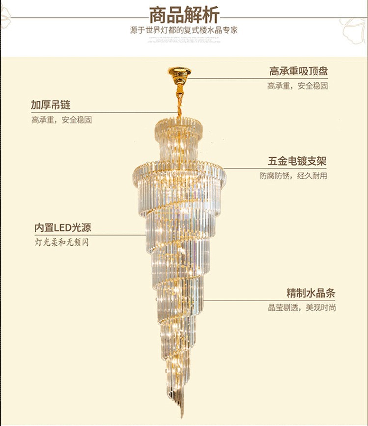 회전 계단실 크리스탈 샹들리에 롱 샹들리에 빌라 중공 계단 조명 호텔 웨딩 로비 거실 조명 해외 판매스토어 가기