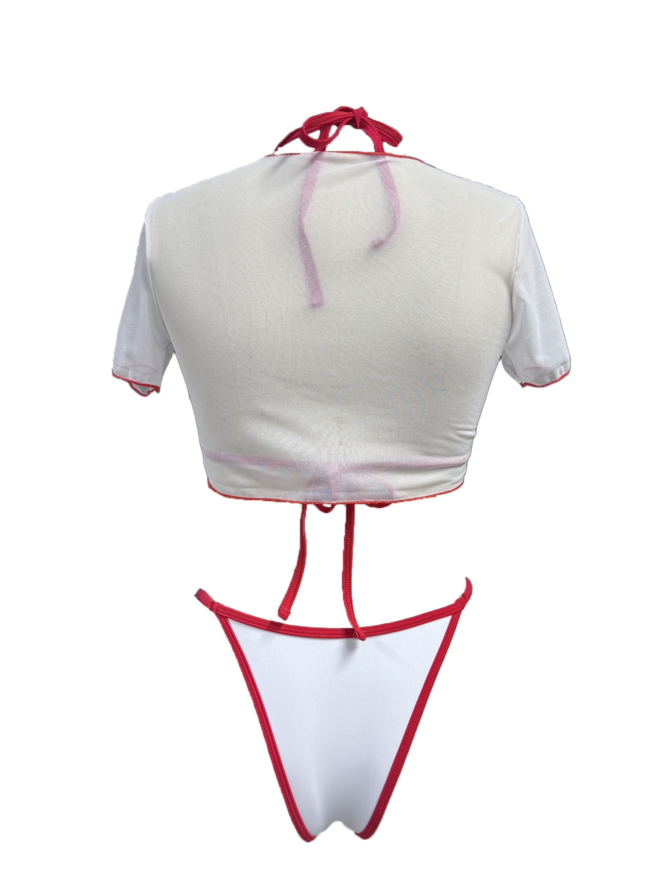 2025 새로운 아마존 국경 인쇄 탑 메쉬 블라우스 분할 섹시한 3 피스 비키니 수영복 여성