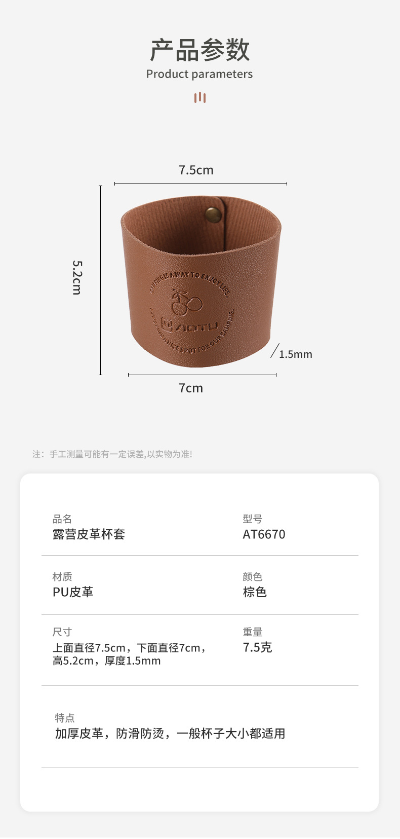 特点:加厚皮革,防滑防烫,一般杯子大小都适用