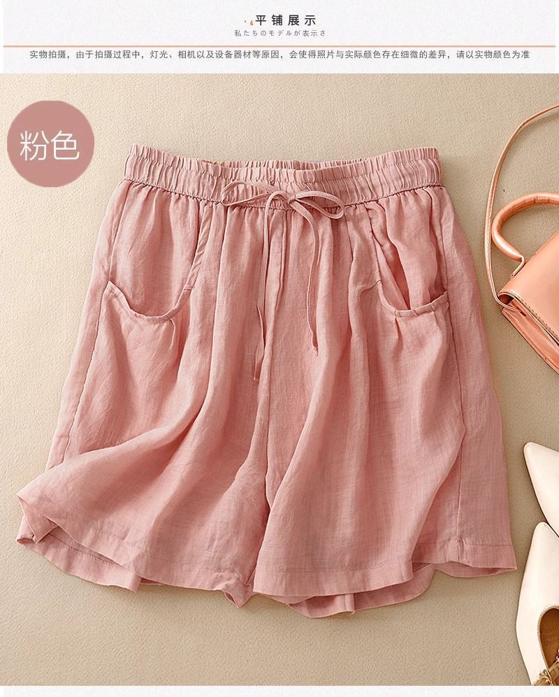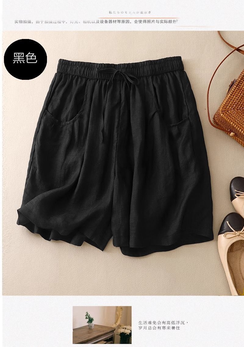 여름 신작 캐주얼 와이드 레그 반바지, 시원한 면 및 린넨 드로스트링, 얇은 스트랩 포켓 디자인, 여성용 얇은 단색 바지스토어 가기