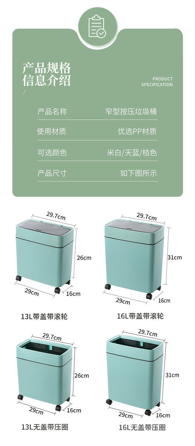 • 16L + 대용량 + 쓰레기봉투 수납함 + 범용 바퀴