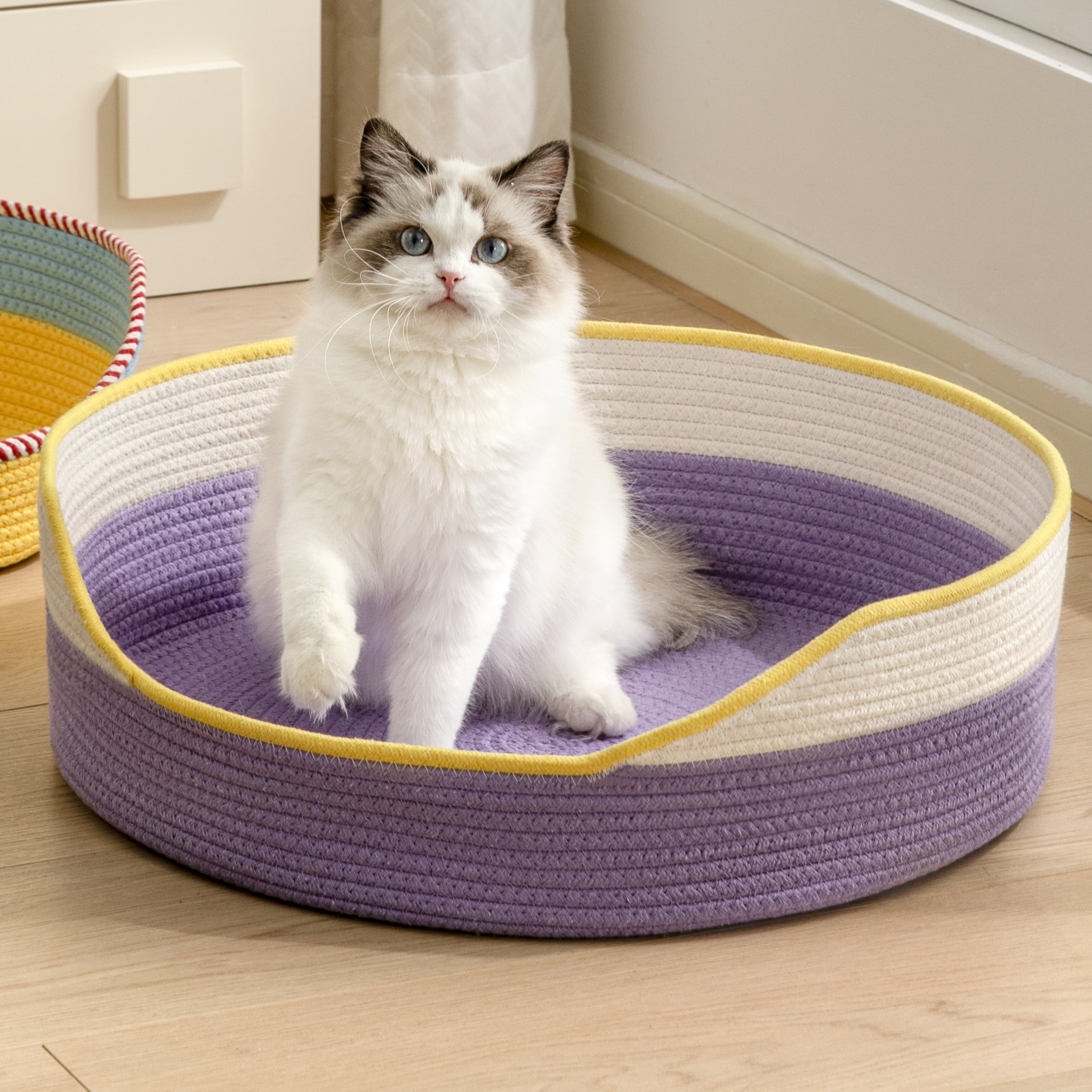 손으로 짠 고양이 둥지, 고양이 스크래치 보드, 겨울철 따뜻한 고양이 침대, 애완동물 매트, 등나무로 짠 강아지 둥지, 긁힘 방지 및 내마모성스토어 가기