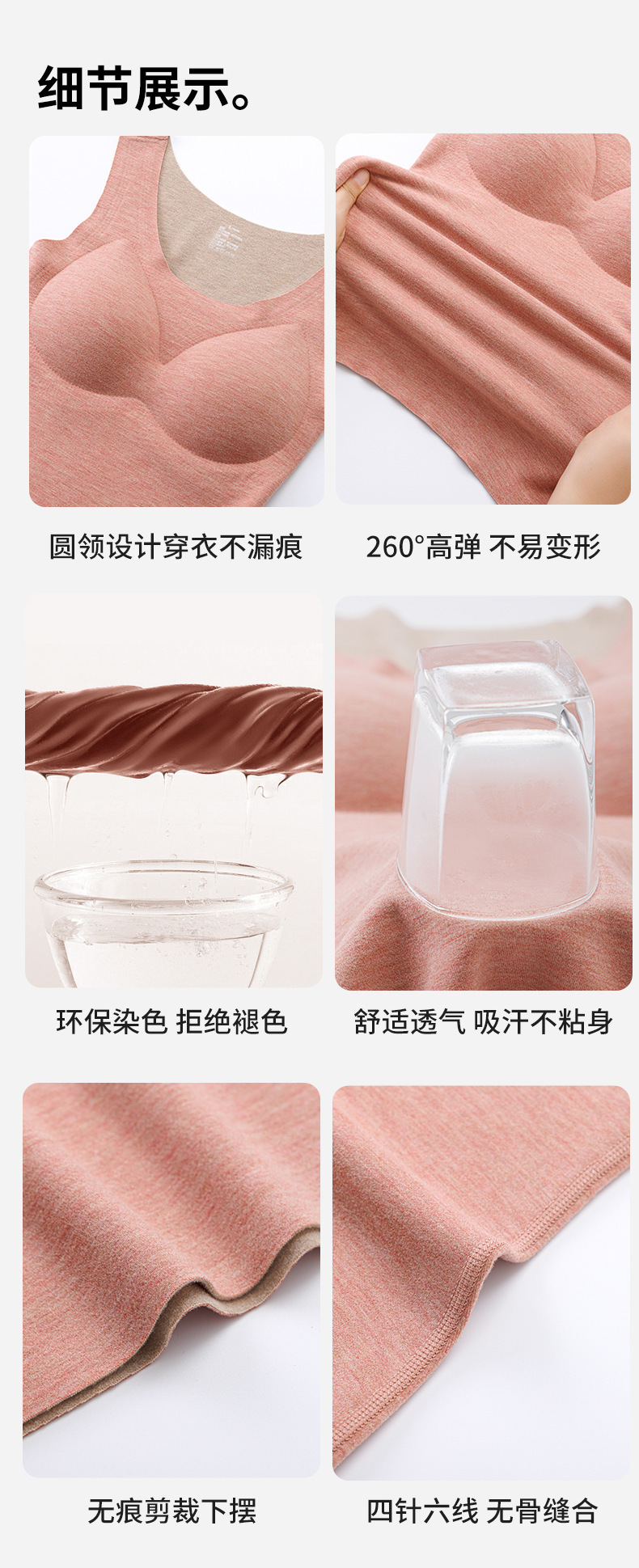 신제품 캐시미어 실크 벨벳 여성용 따뜻한 조끼 가슴 패드가있는 원활한 기모 가열 기본 조끼 가을, 겨울 속옷스토어 가기