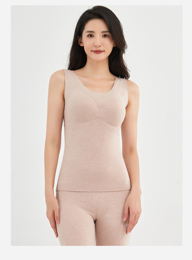 신제품 캐시미어 실크 벨벳 여성용 따뜻한 조끼 가슴 패드가있는 원활한 기모 가열 기본 조끼 가을, 겨울 속옷