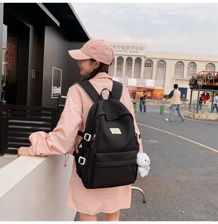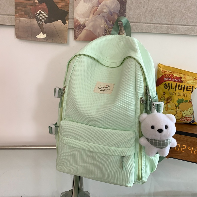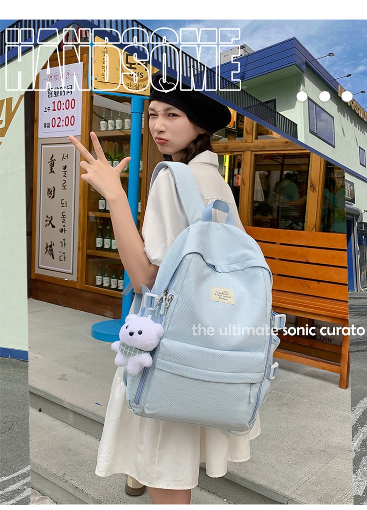 고등학생 디자인 책가방 여성용 새로운 다용도 중학생 대학 스타일 배낭 단색 대학생 간단한 가방스토어 가기
