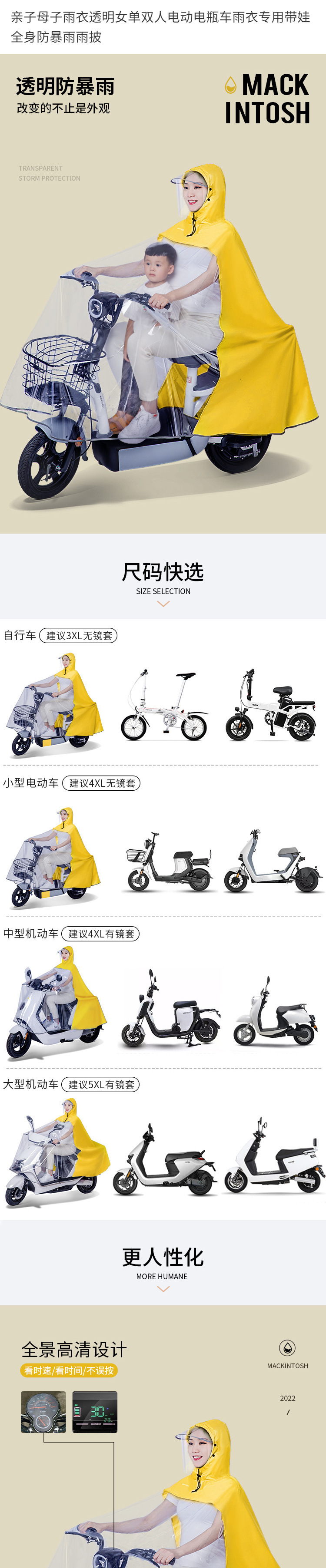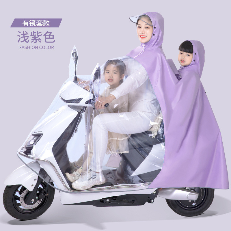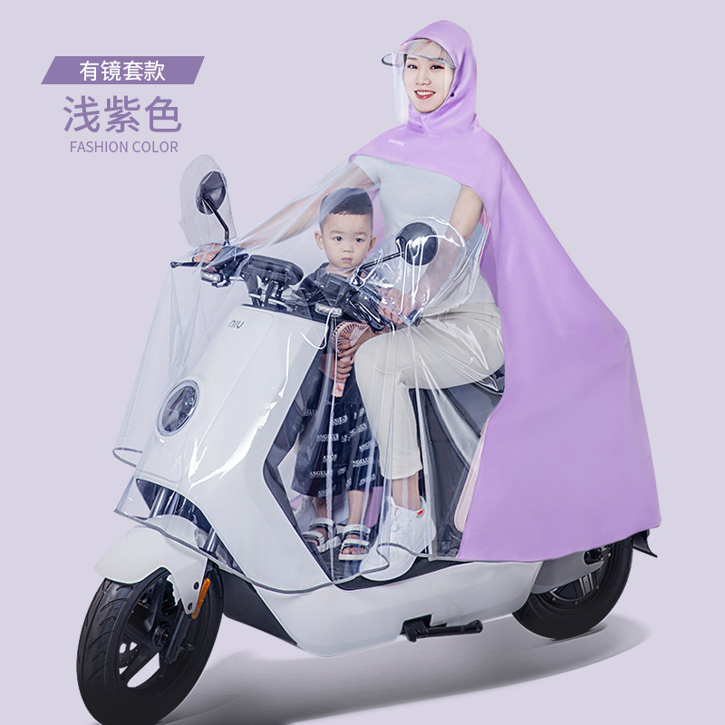 엄마와 아이 부모-아이 전기 자동차 비옷 더블 오토바이 배터리 자동차 새로운 투명 여성의 전신 비바람 보호 어린이 비 새로운스토어 가기