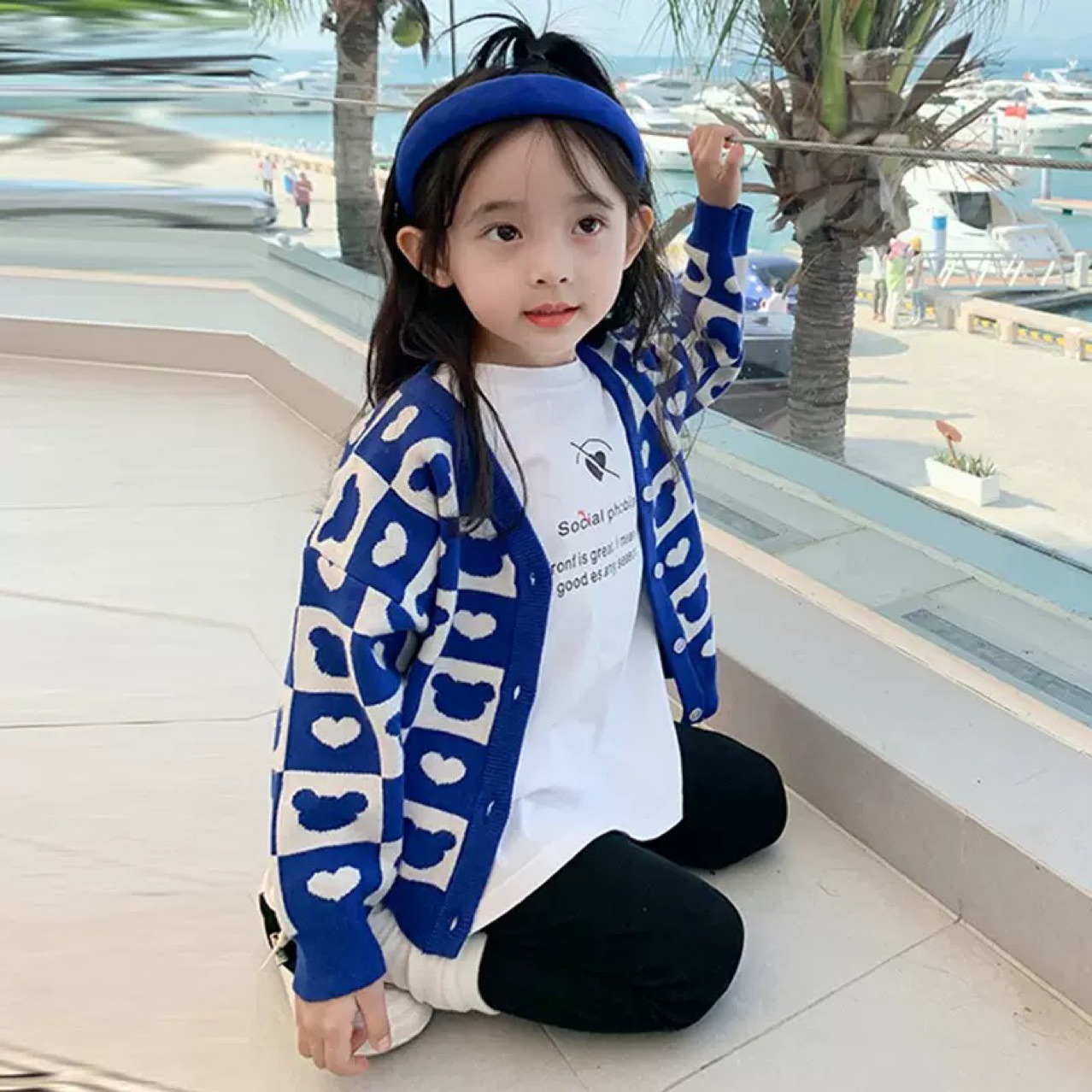 아동복 여아 니트 가디건 2025 이른 봄 새로운 스타일 외국 스타일 Klein Blue 패션 스웨터 재킷