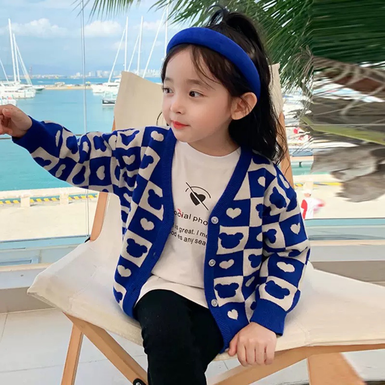아동복 여아 니트 가디건 2025 이른 봄 새로운 스타일 외국 스타일 Klein Blue 패션 스웨터 재킷스토어 가기