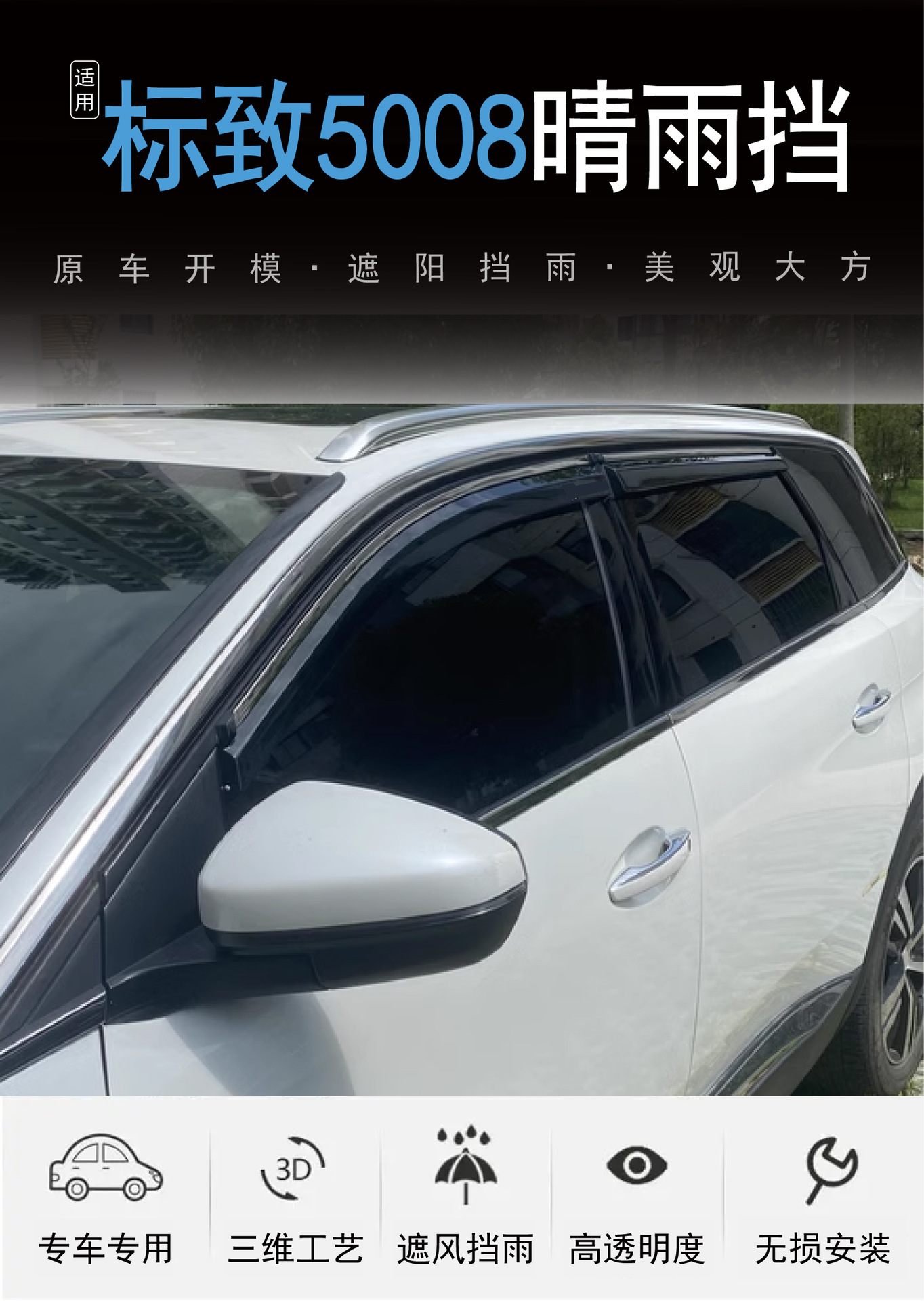 2017-2024 푸조 5008 창 차단 및 비 차단 검정색 아크릴 자동차 비 차단용 국경 간 적용 가능스토어 가기