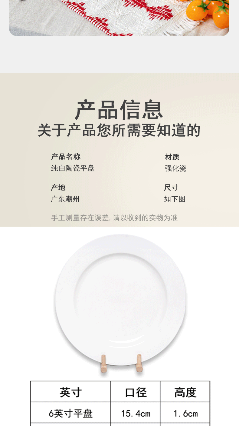 가정용 플랫 플레이트 디스크 순수한 화이트 세라믹 라운드 웨스턴 푸드 플레이트 레스토랑 접시 간단한 스타일 웨스턴 스타일 식기 호텔 테이블스토어 가기