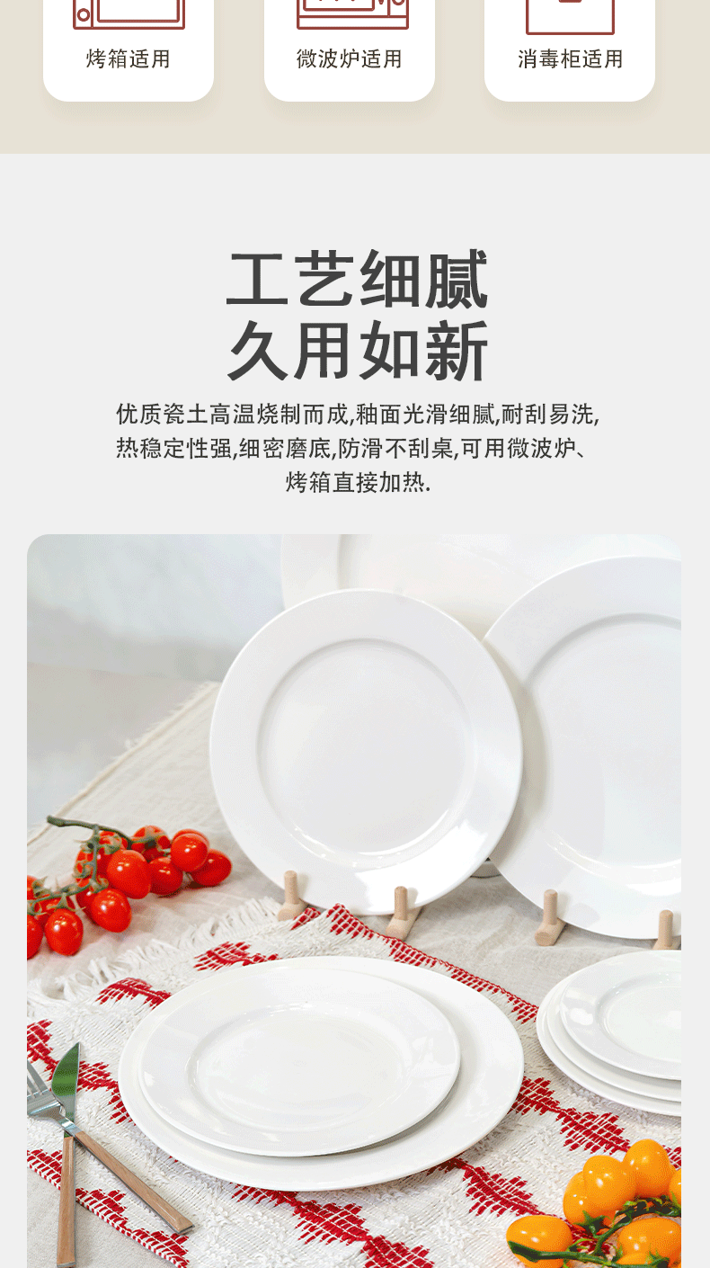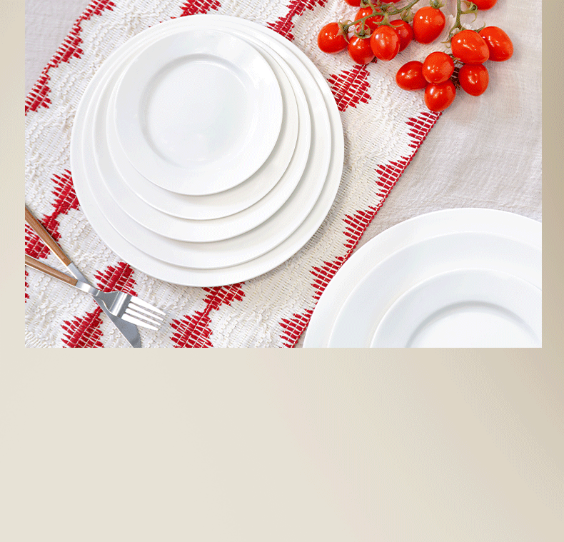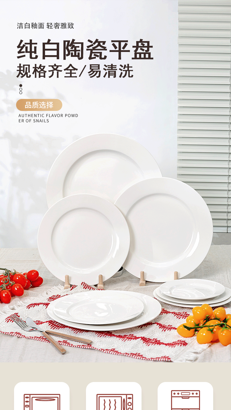가정용 플랫 플레이트 디스크 순수한 화이트 세라믹 라운드 웨스턴 푸드 플레이트 레스토랑 접시 간단한 스타일 웨스턴 스타일 식기 호텔 테이블