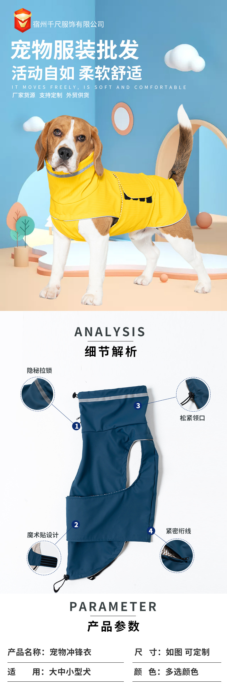 제조 업체 도매 대형 개 비옷 도매 노란색 전체 범위 반사 야외 방수 개 비옷스토어 가기