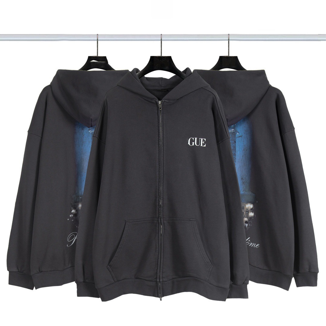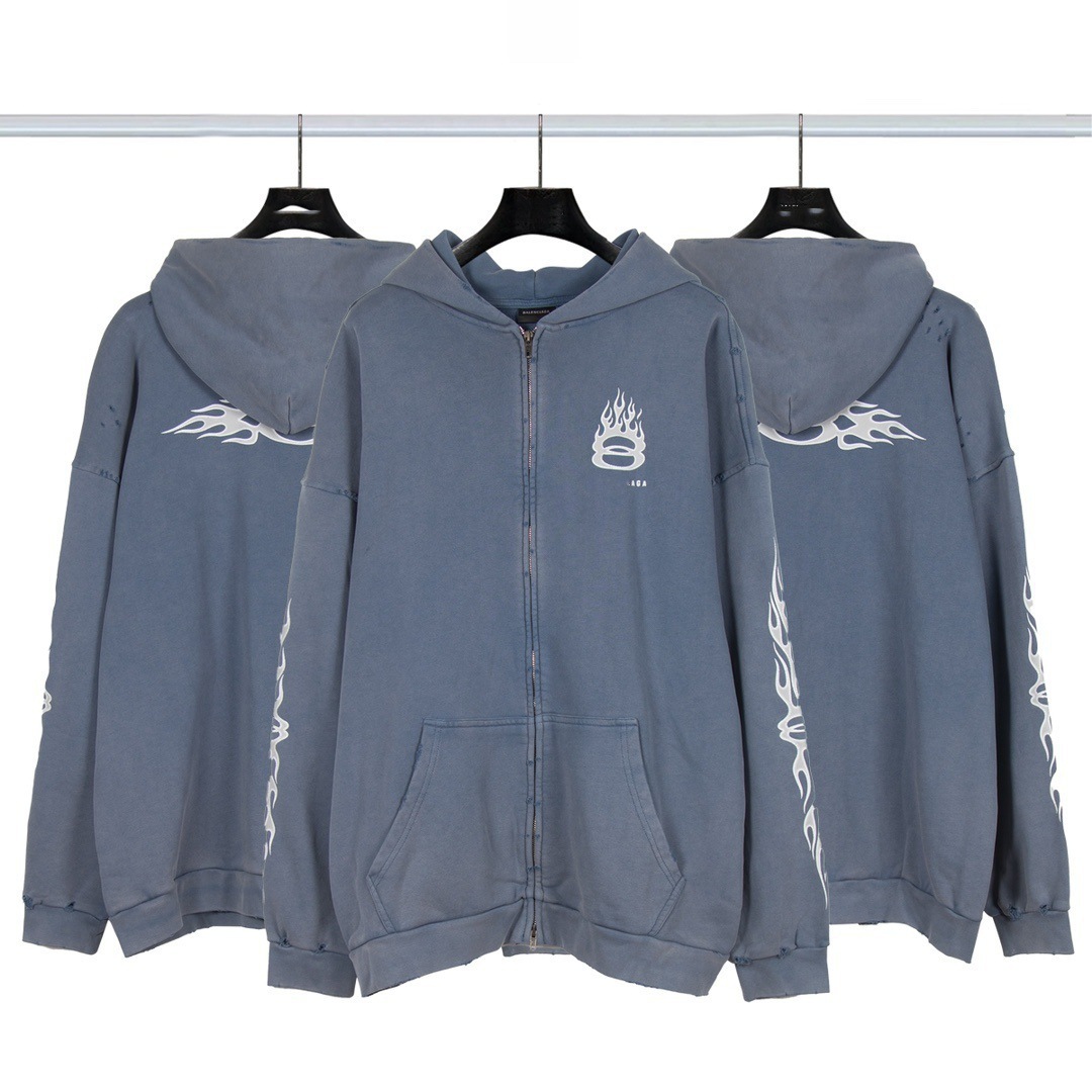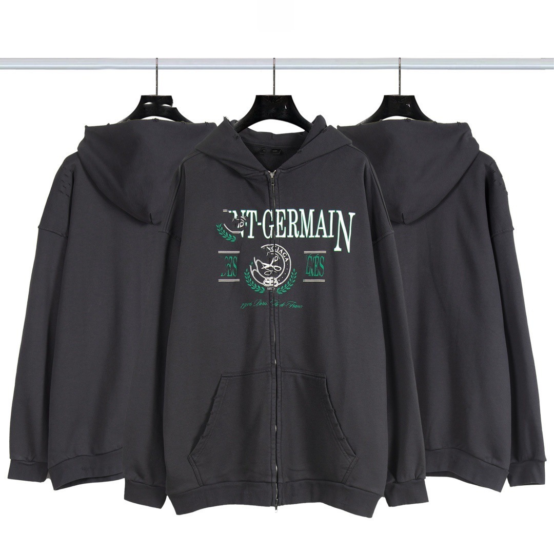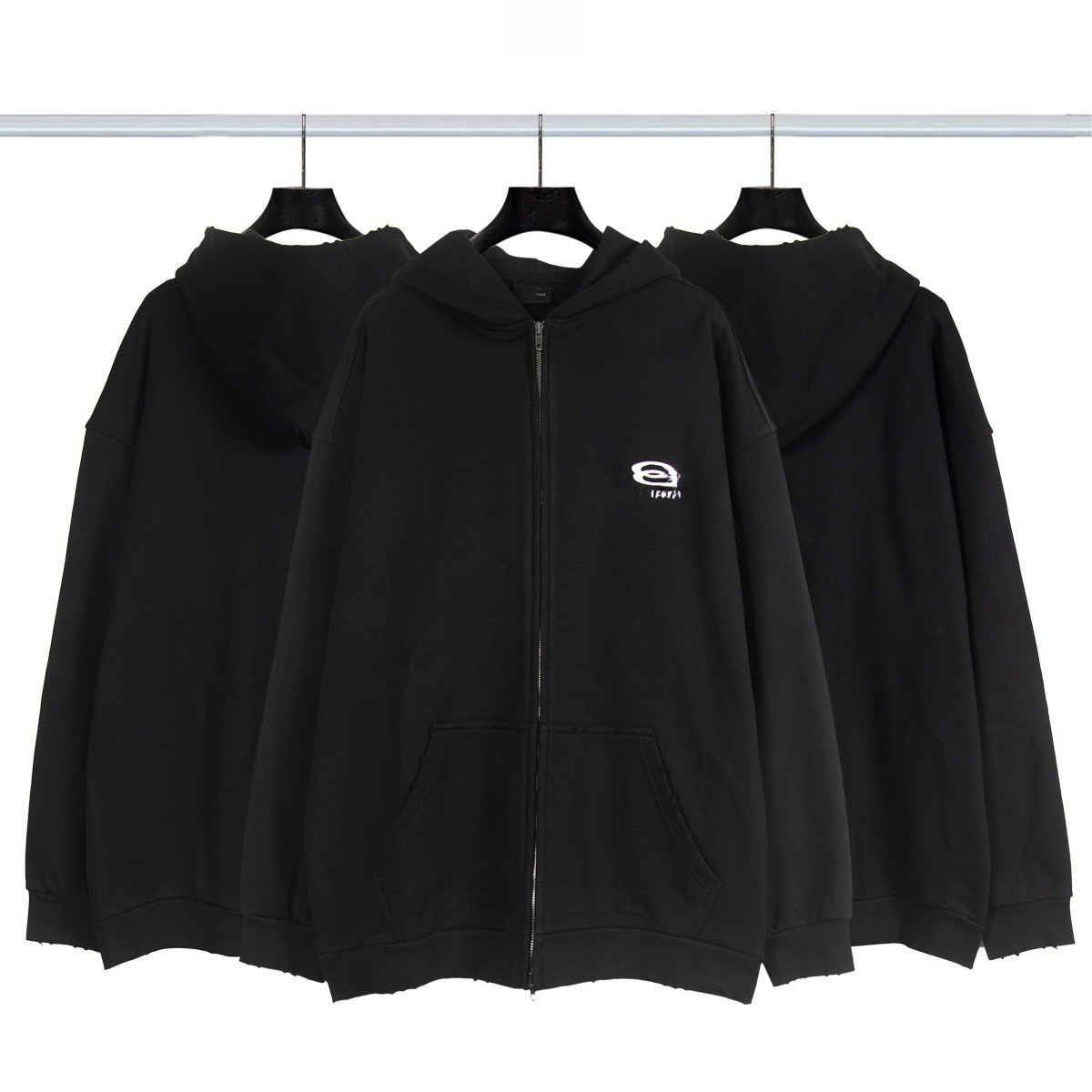 고객 서비스 상담 24s 국경 간 파리 B 가을과 겨울 새로운 더블 서클 자수 후드 지퍼 스웨터 도매 면화스토어 가기