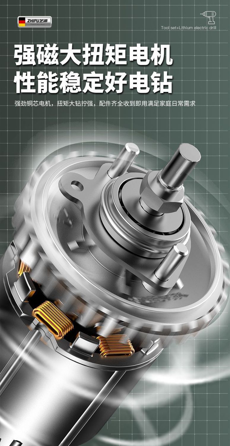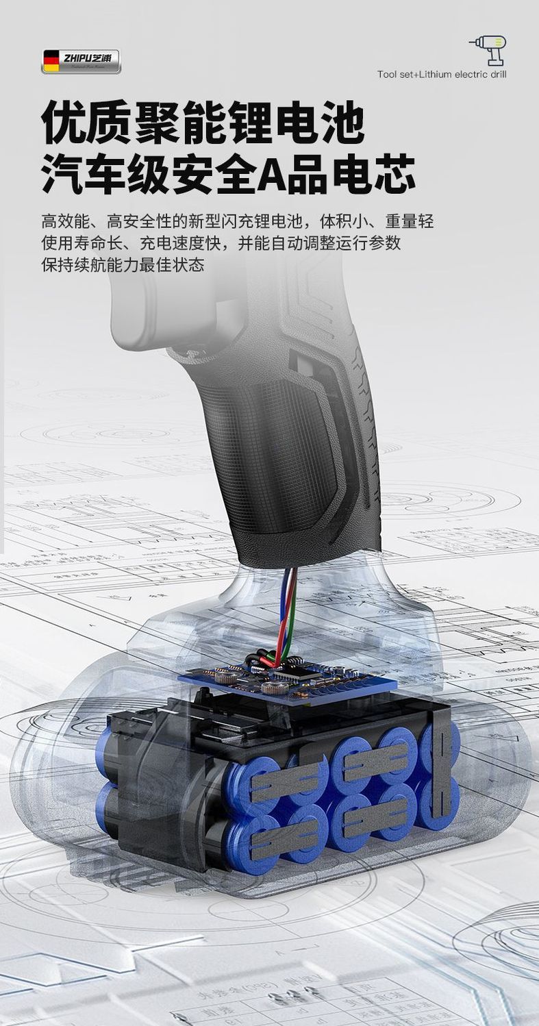 • Zhenxuan 고품질 전기 드릴 리치 도구 세트 배터리 2개