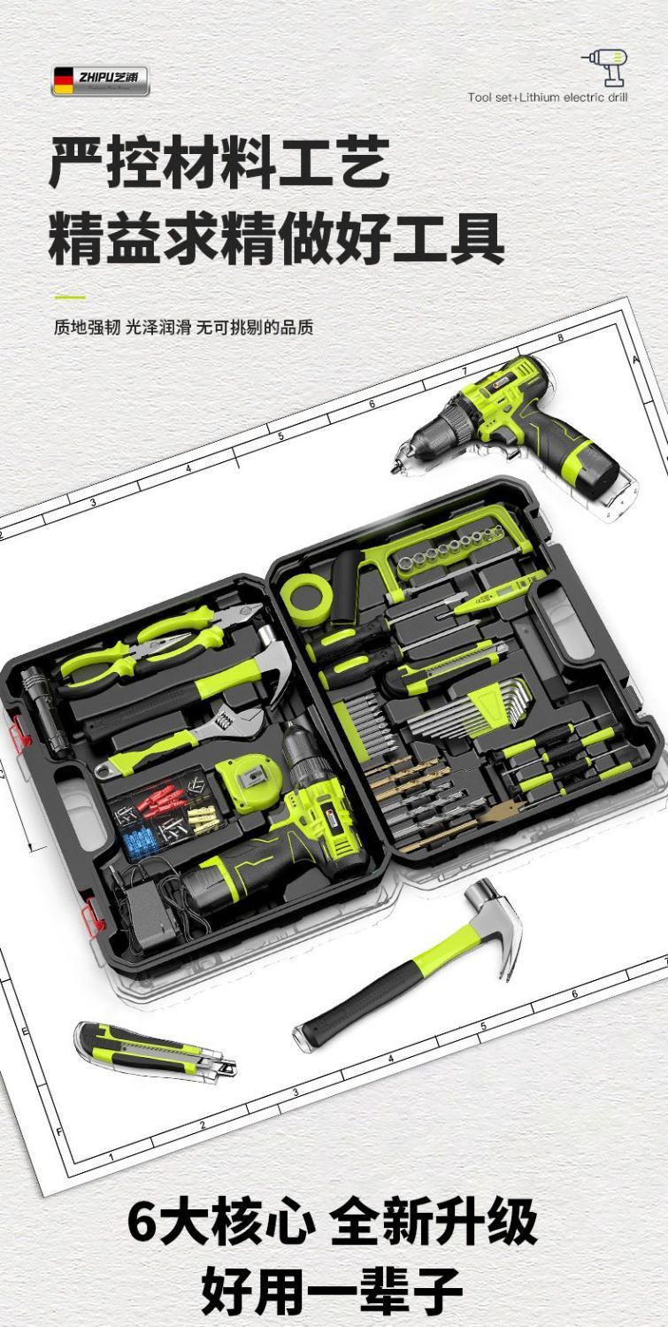가정용 세트 핸드 드릴 조합 하드웨어 유지 보수 전기 스크루 드라이버의 독일 Zhipu 도구 상자 전체 세트