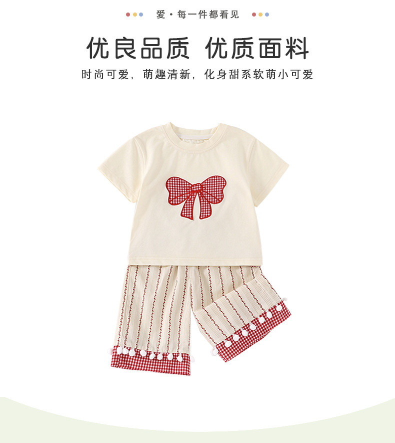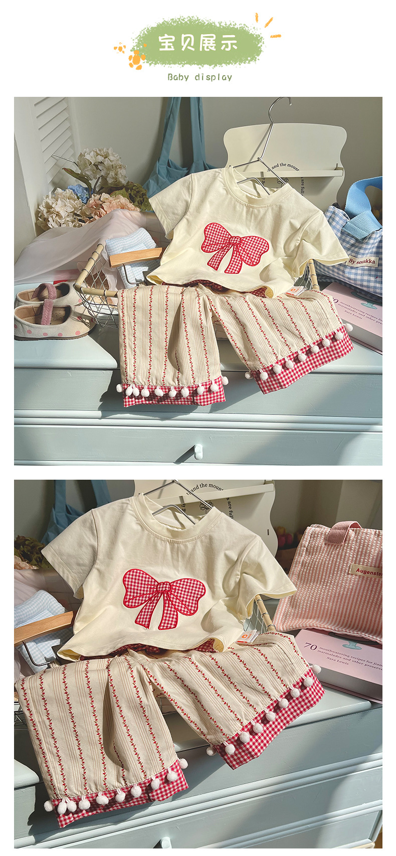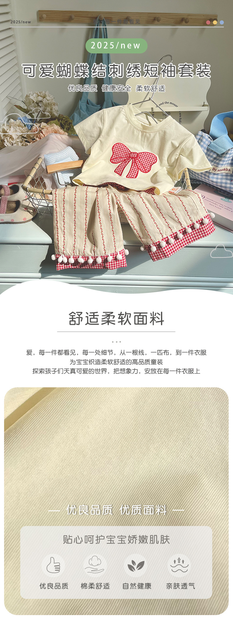재고 DZ25216 소녀 세트 2025 여름 자수 활 티셔츠 웨스턴 디자인 센스 스트라이프 바지 세트스토어 가기