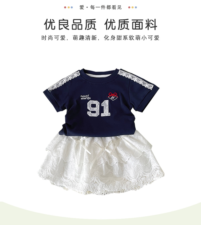 재고 여자 세트 2025 여름 새로운 스포츠 레이스 웨스턴 스타일 짧은 소매 활 코튼 케이크 스커트 아동복