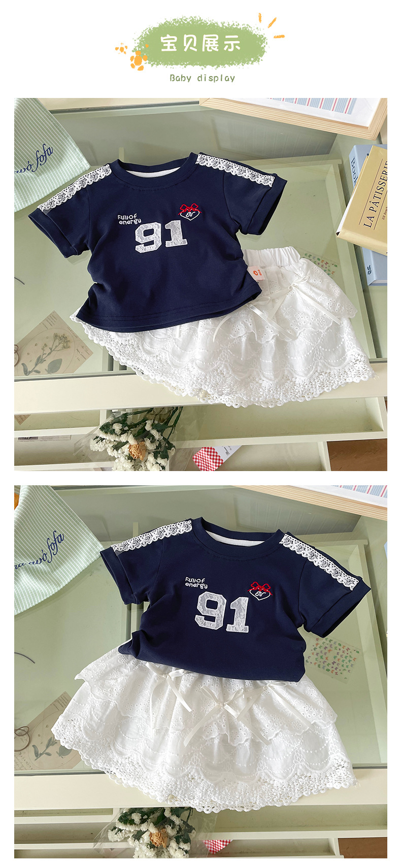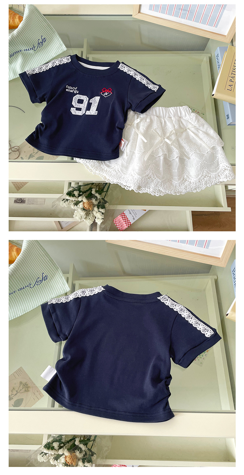 재고 여자 세트 2025 여름 새로운 스포츠 레이스 웨스턴 스타일 짧은 소매 활 코튼 케이크 스커트 아동복스토어 가기