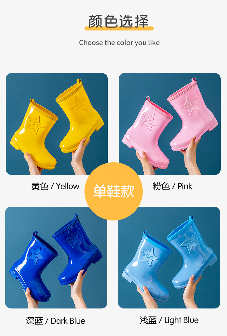 중학생 및 여학생을위한 대형 어린이 및 남성 레인 부츠 용 어린이 PVC 미끄럼 방지 장화 경량 캔디 컬러 워터 부츠