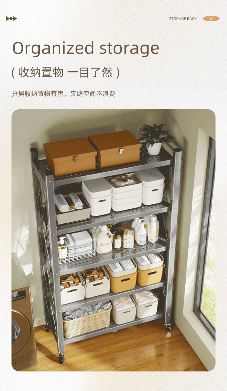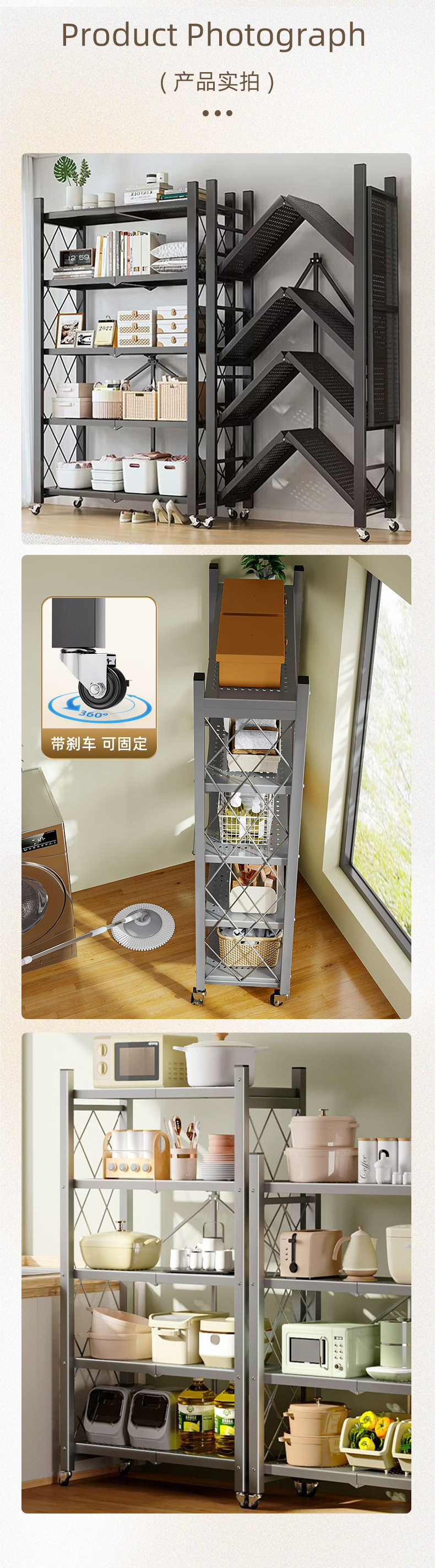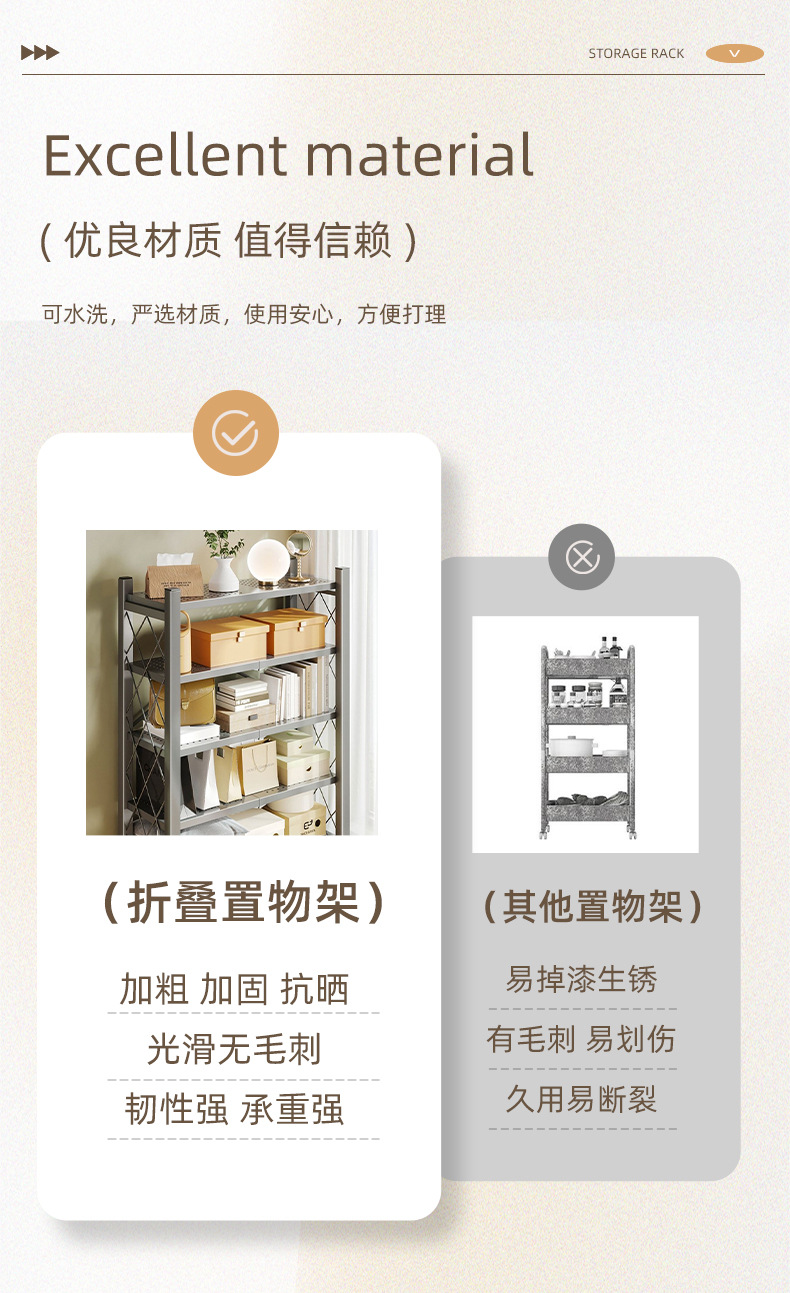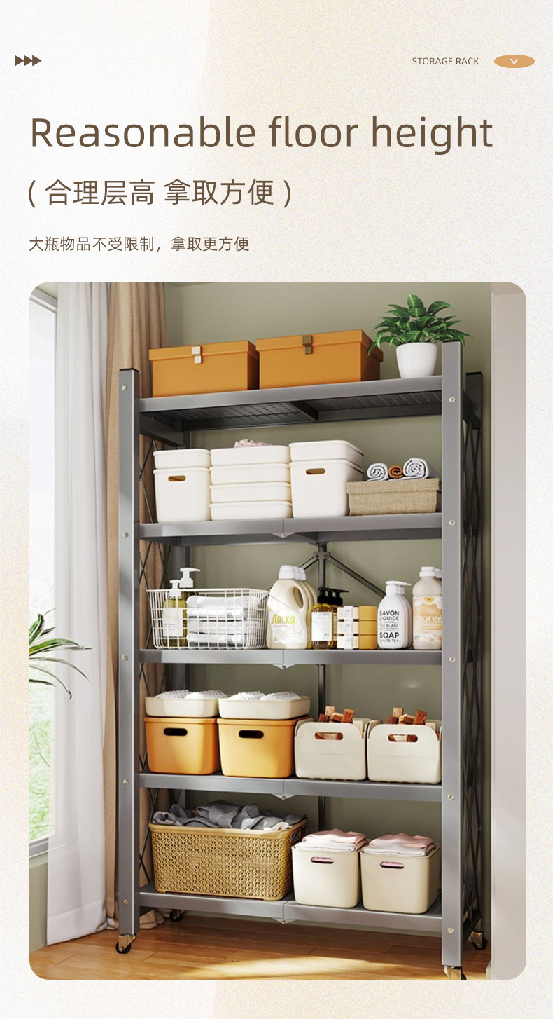 이동식 접이식 보관 랙, 설치가 필요 없는 바닥에서 올려진 다층 보관 랙, 가정용 창고 보관 랙, 철제 랙