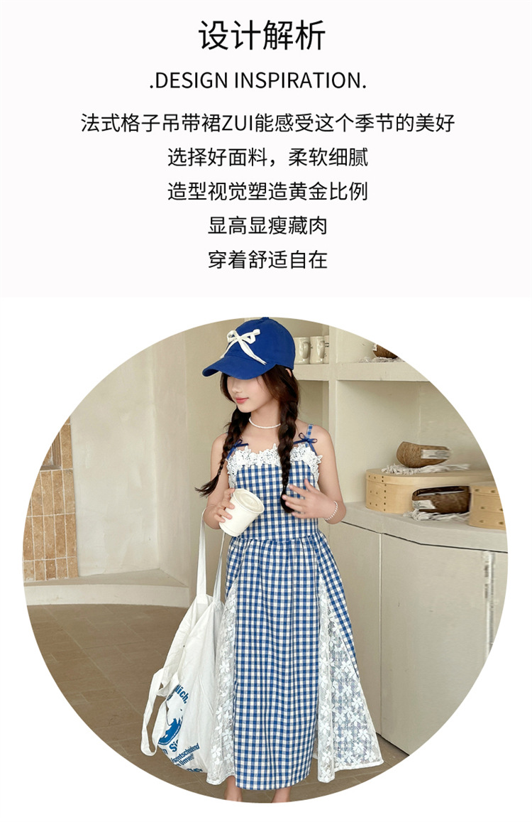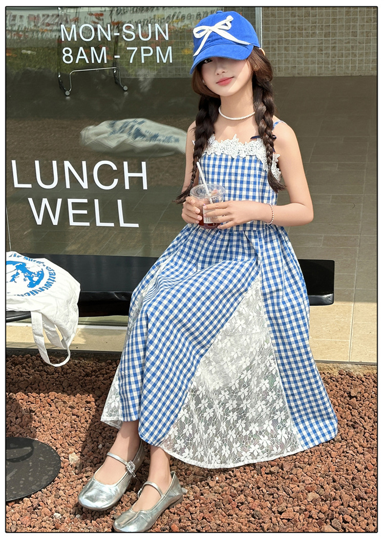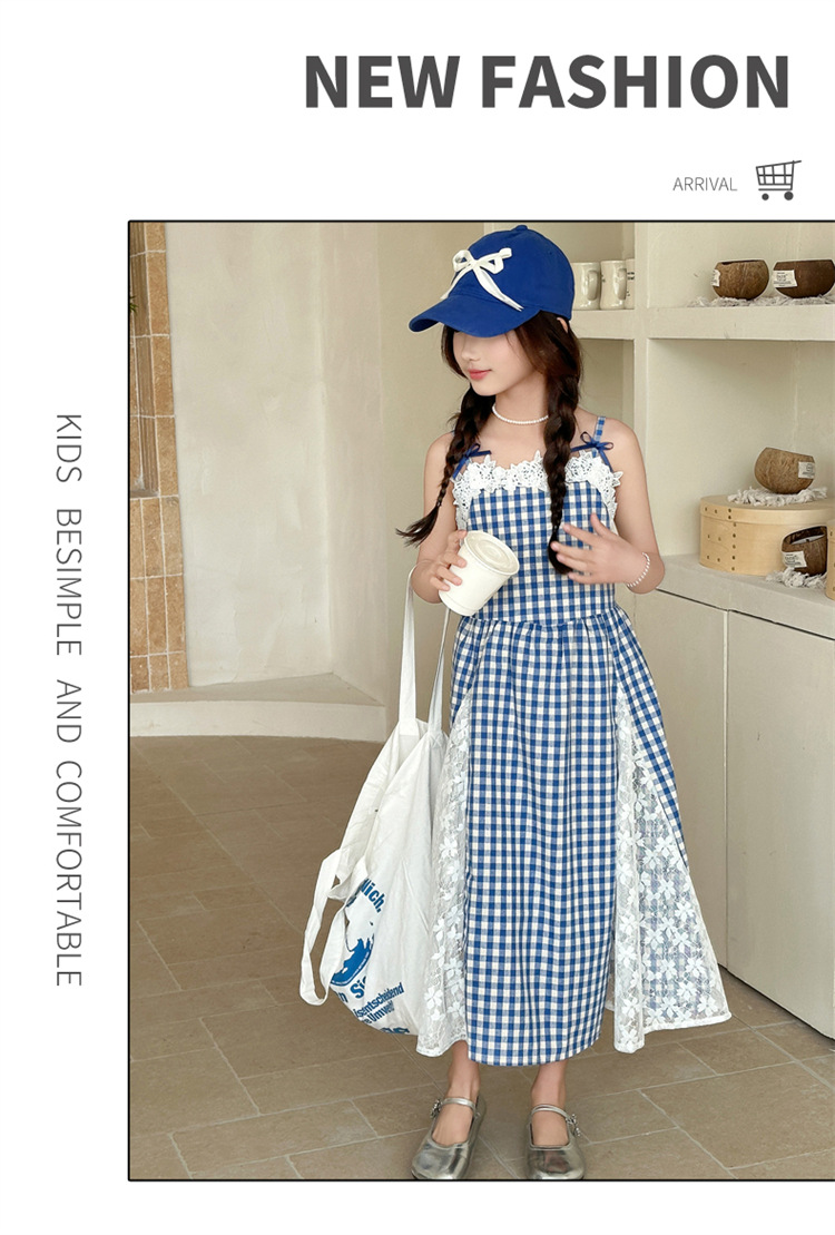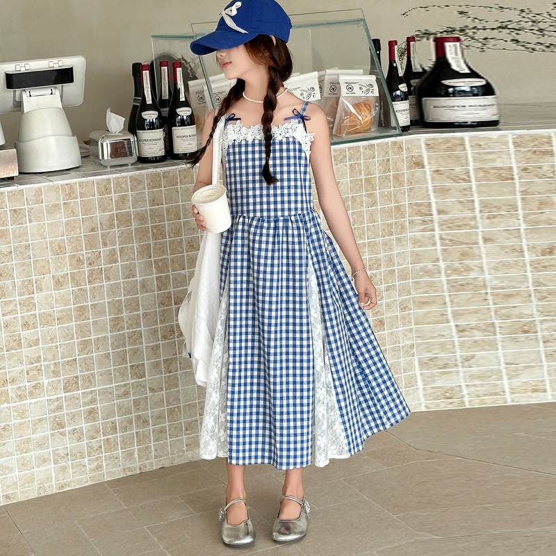 소녀 원피스 여름 2025 새로운 스타일 서양식 중 큰 아이 공주 원피스 유행 어린이 격자 무늬 슬링 긴 원피스스토어 가기