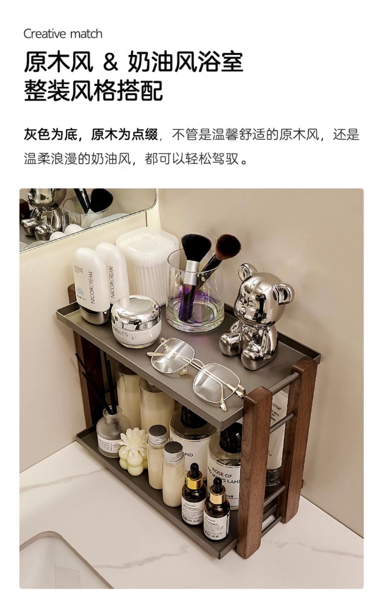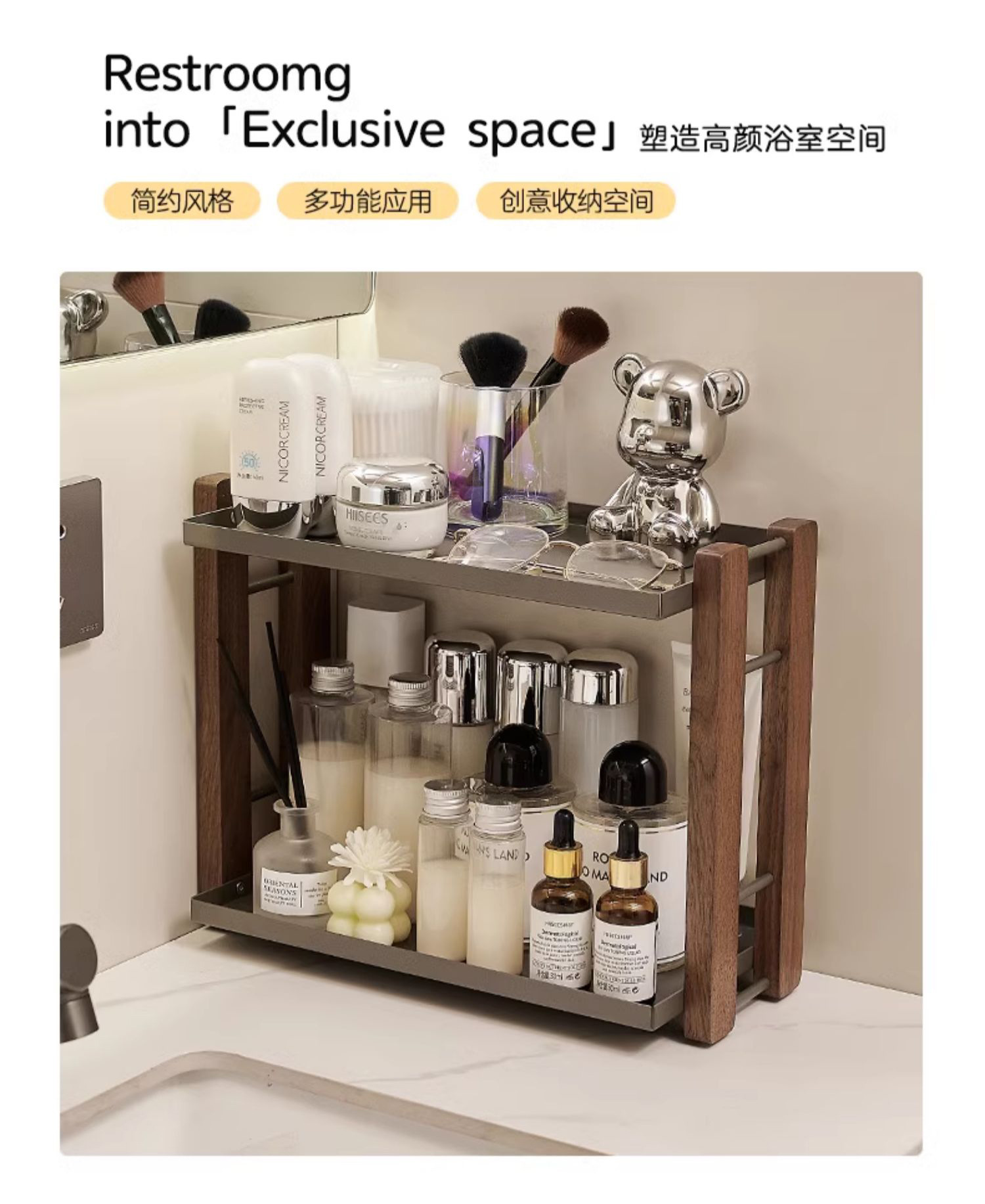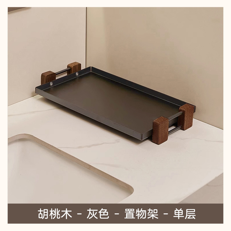 화장실 싱크 드레싱 및 스킨 케어 라이트 럭셔리 호두 화장품 스토리지 박스 데스크탑 스토리지 랙 솔리드 우드 2 층스토어 가기