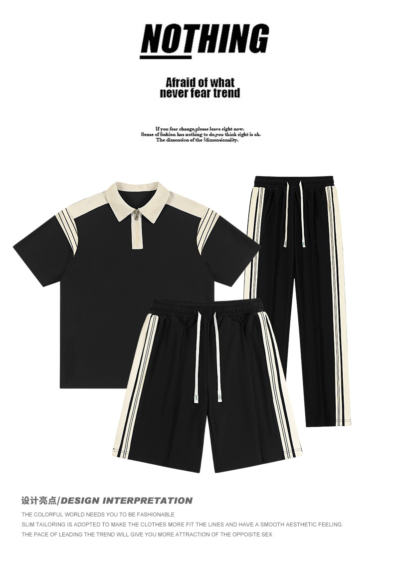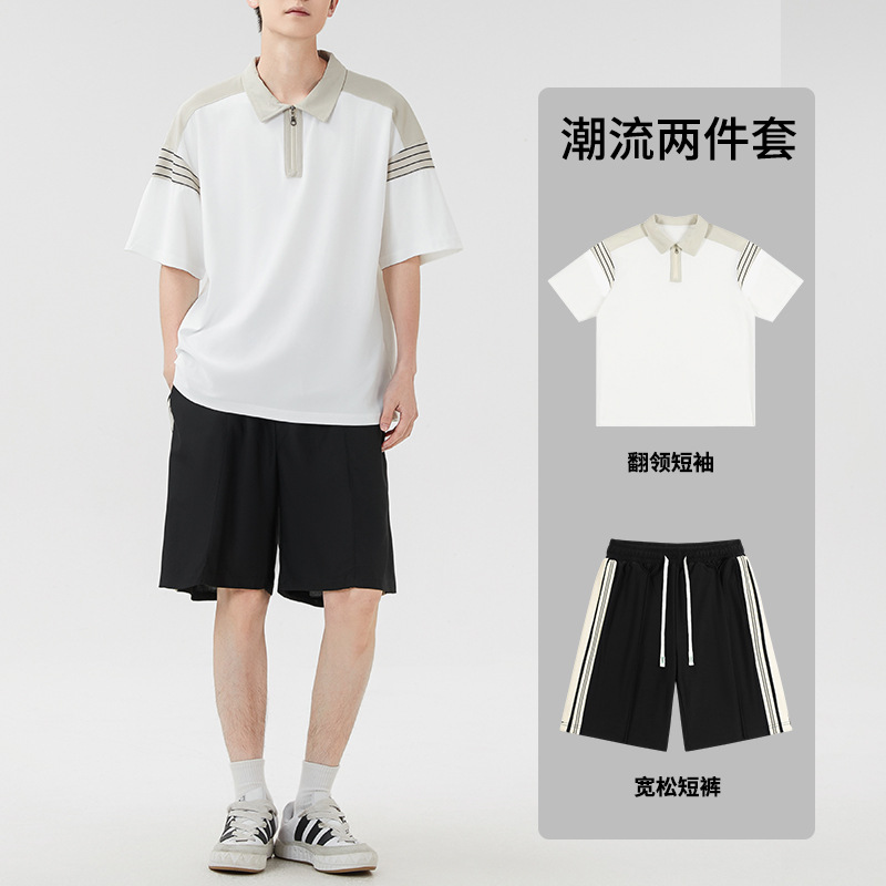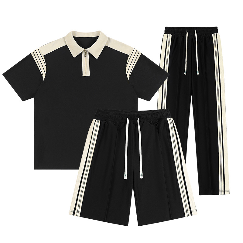 여름 캐주얼 반팔 폴로 셔츠 세트 남자 통기성 스포츠 얇은 느슨한 바지 3 피스 세트 유행 남녀스토어 가기