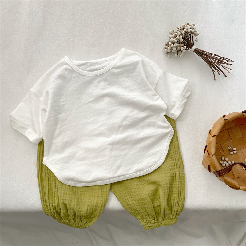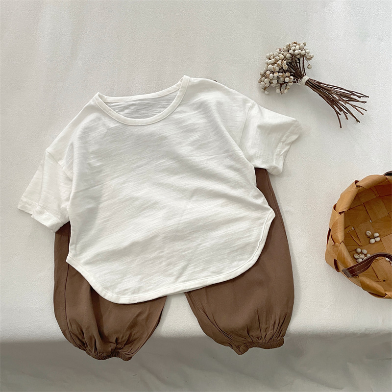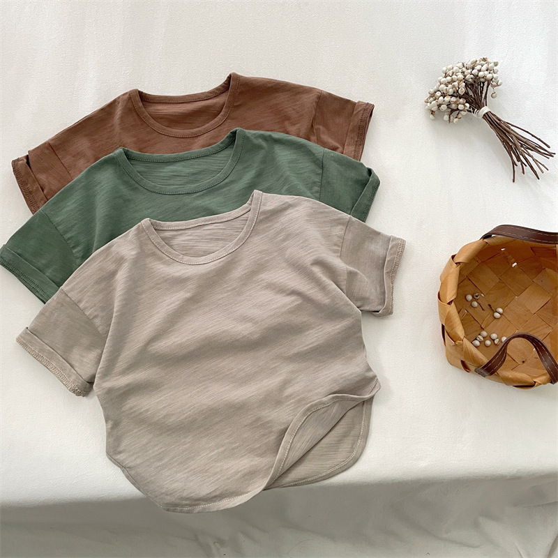 어린이 면화 반팔 티셔츠 2025 여름 소년 통기성 다목적 대나무 면화 티셔츠 아기 단색 탑 도매스토어 가기
