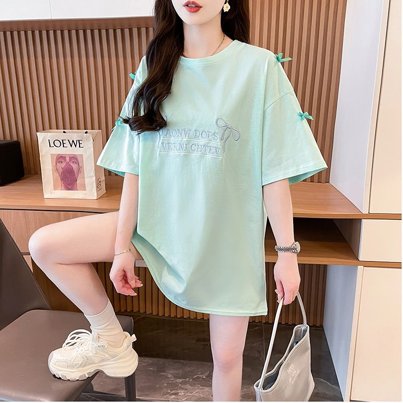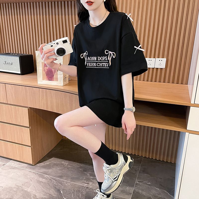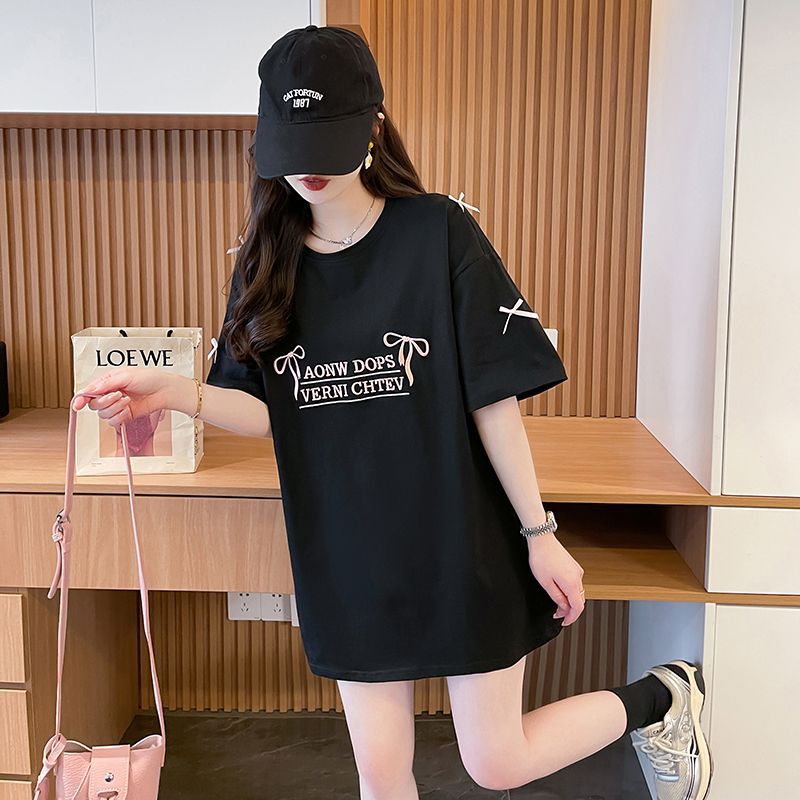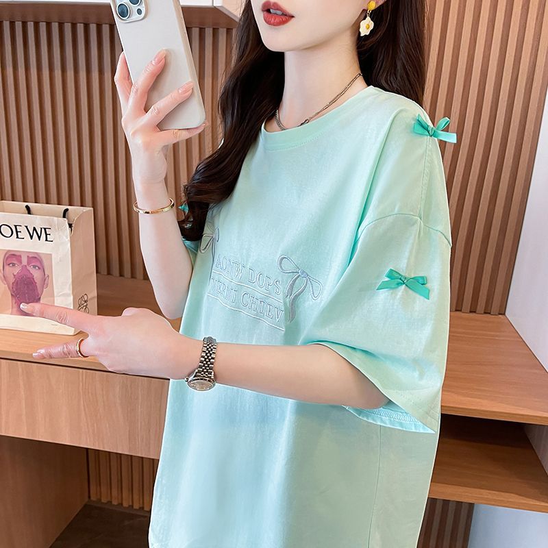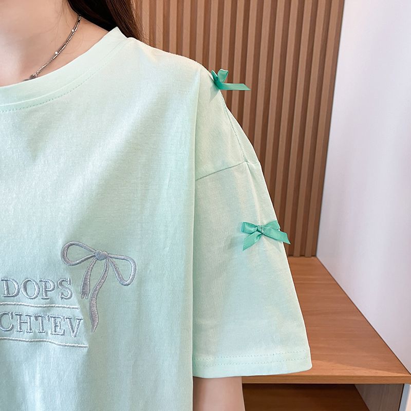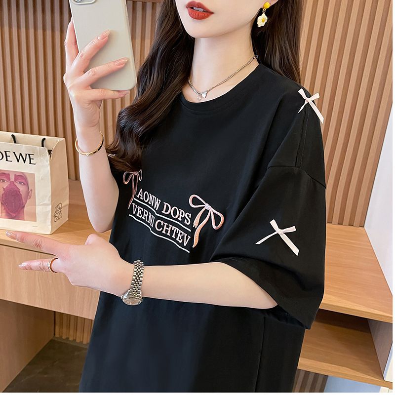 디자인 센스 틈새 자수 활 반팔 티셔츠 여성의 2025 년 새 여름 느슨한 반소매 어깨 옷스토어 가기