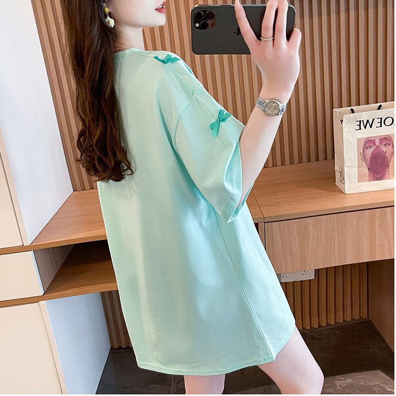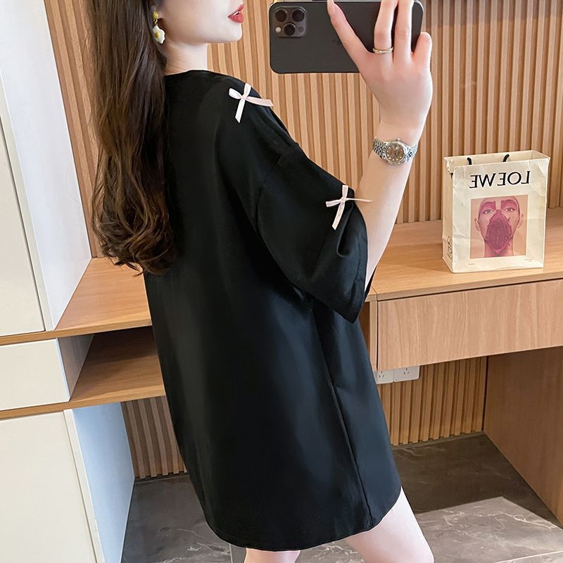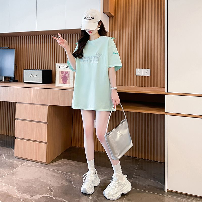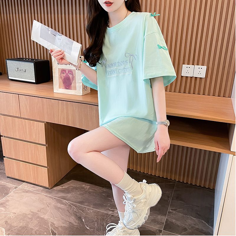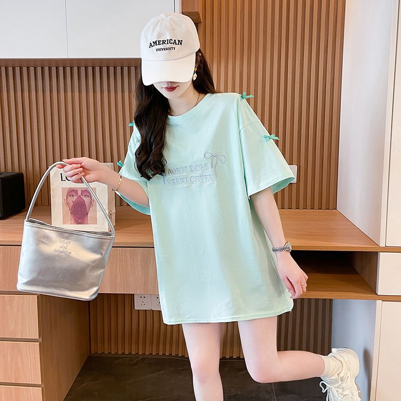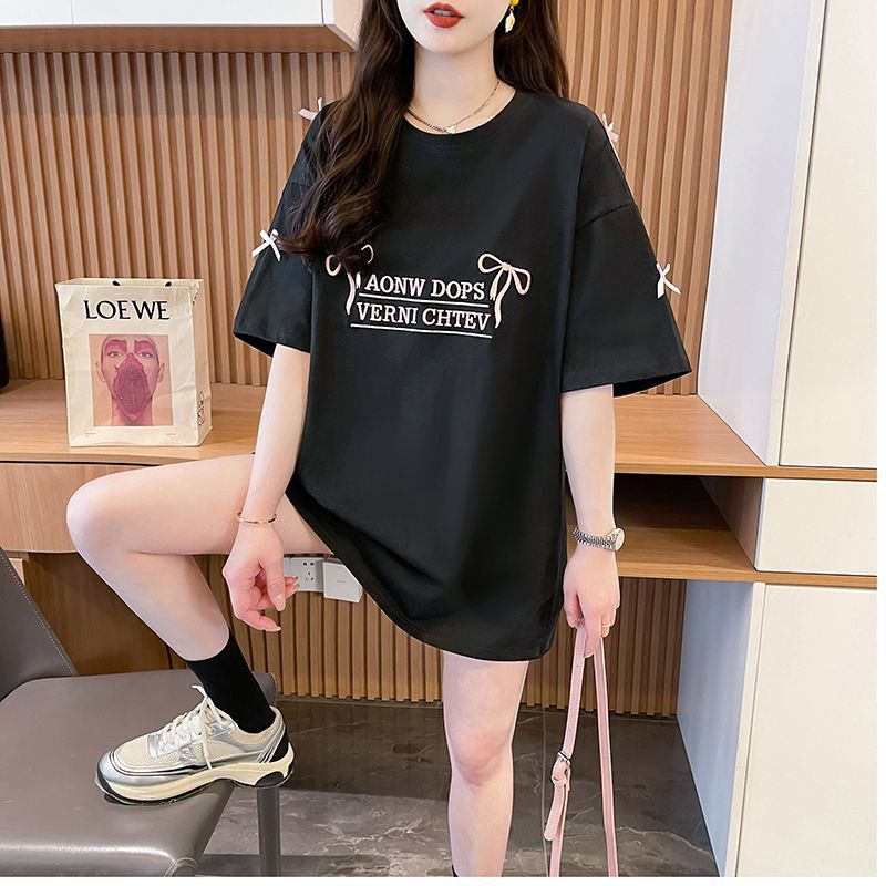 디자인 센스 틈새 자수 활 반팔 티셔츠 여성의 2025 년 새 여름 느슨한 반소매 어깨 옷스토어 가기