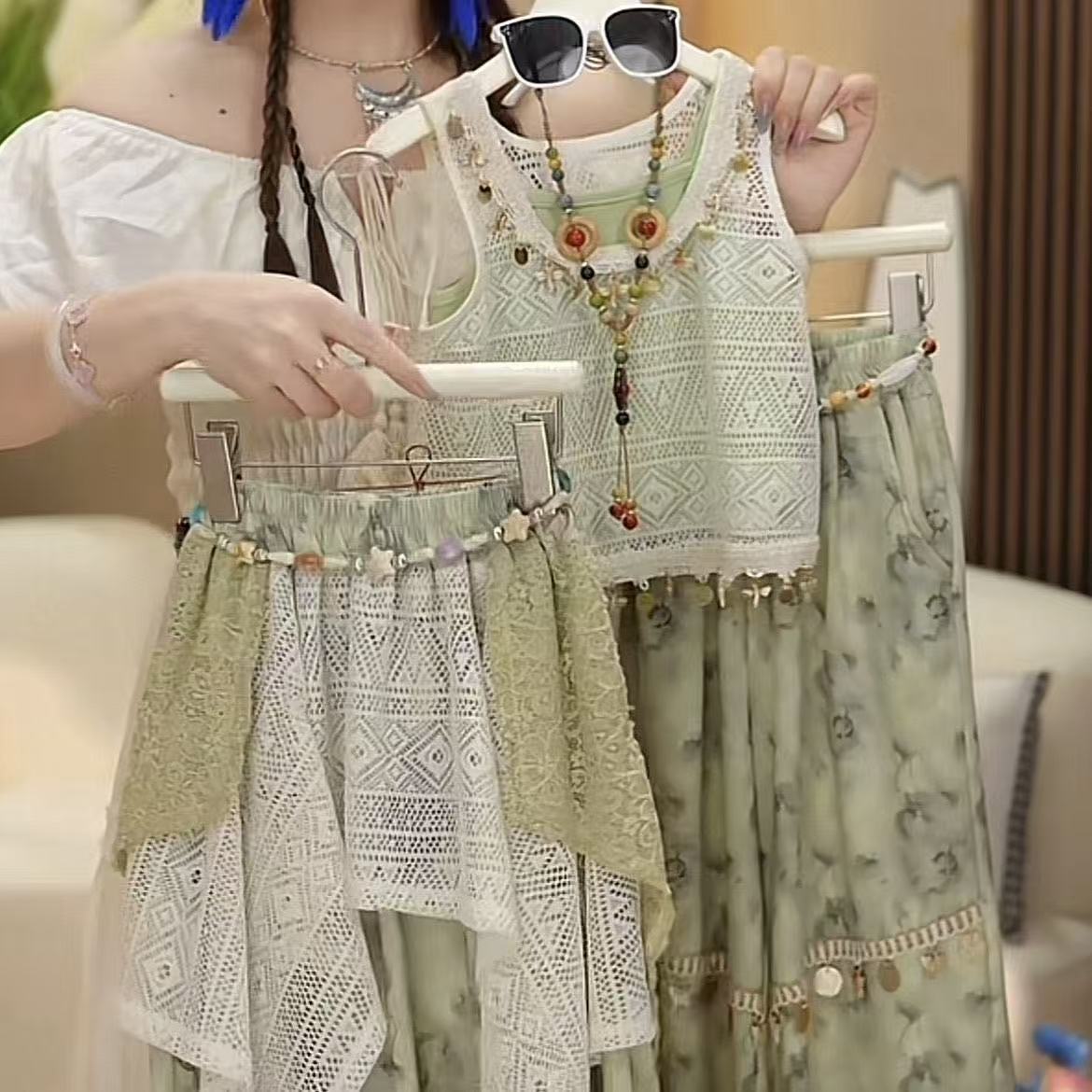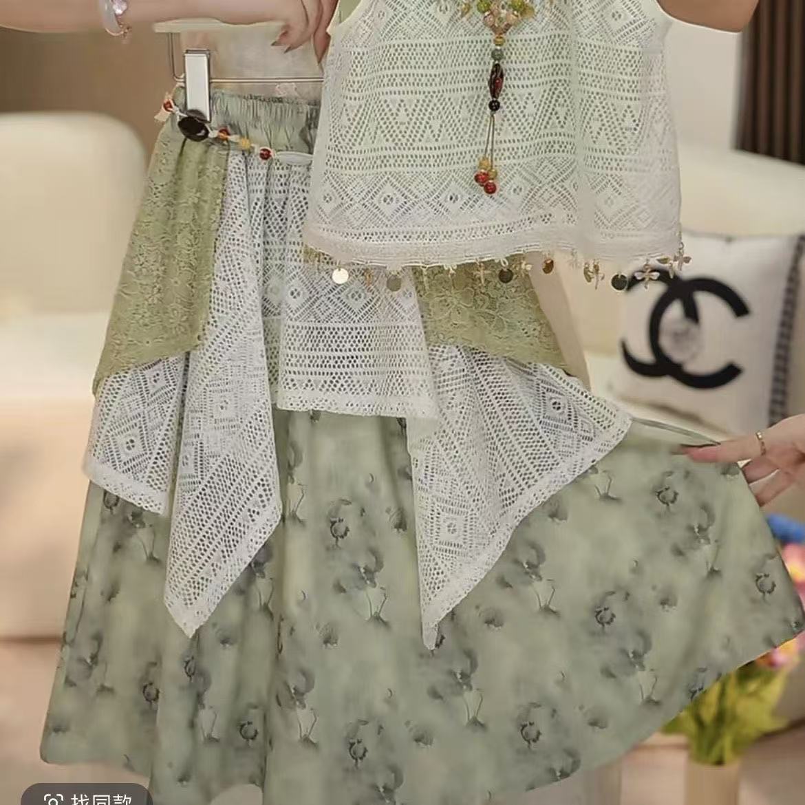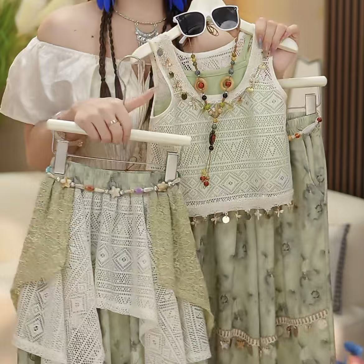 소녀 카미솔 스커트 여름 2025 새로운 도착 세트 빈 외국 스타일 시메아 불규칙한스토어 가기