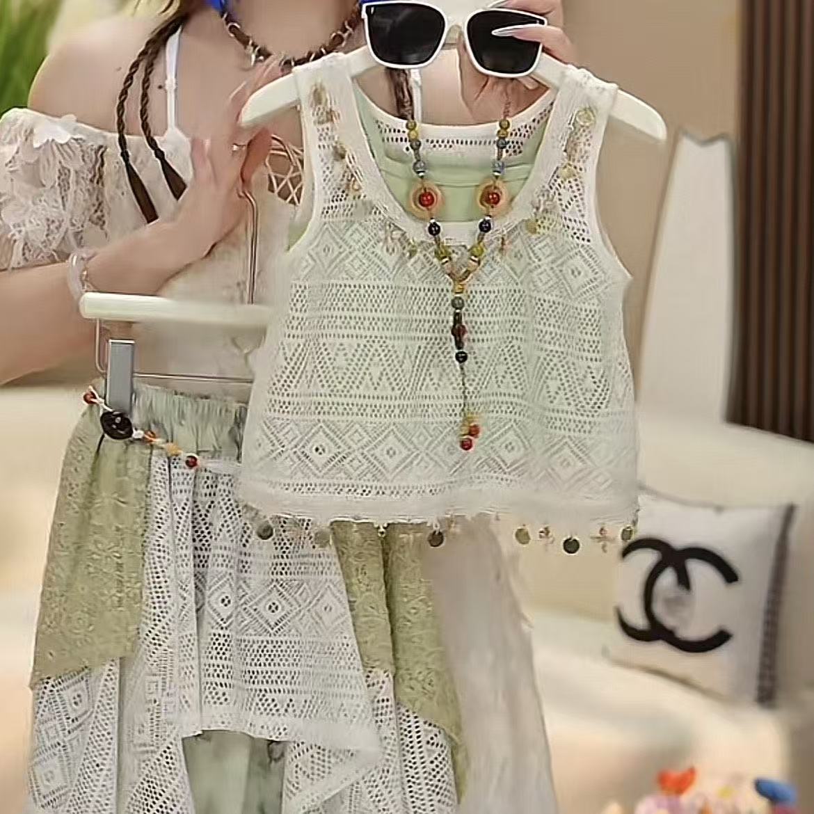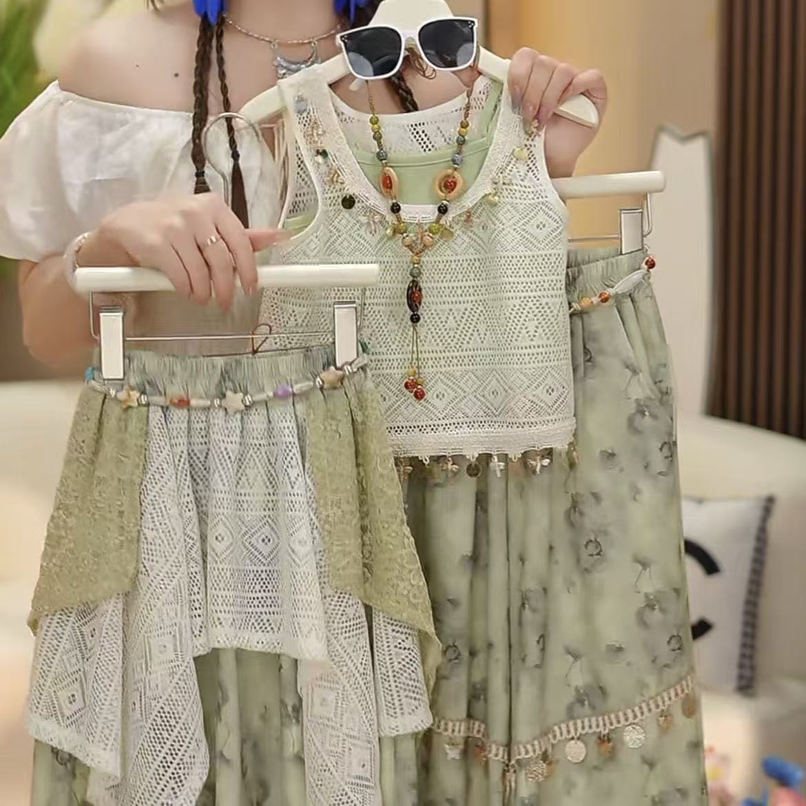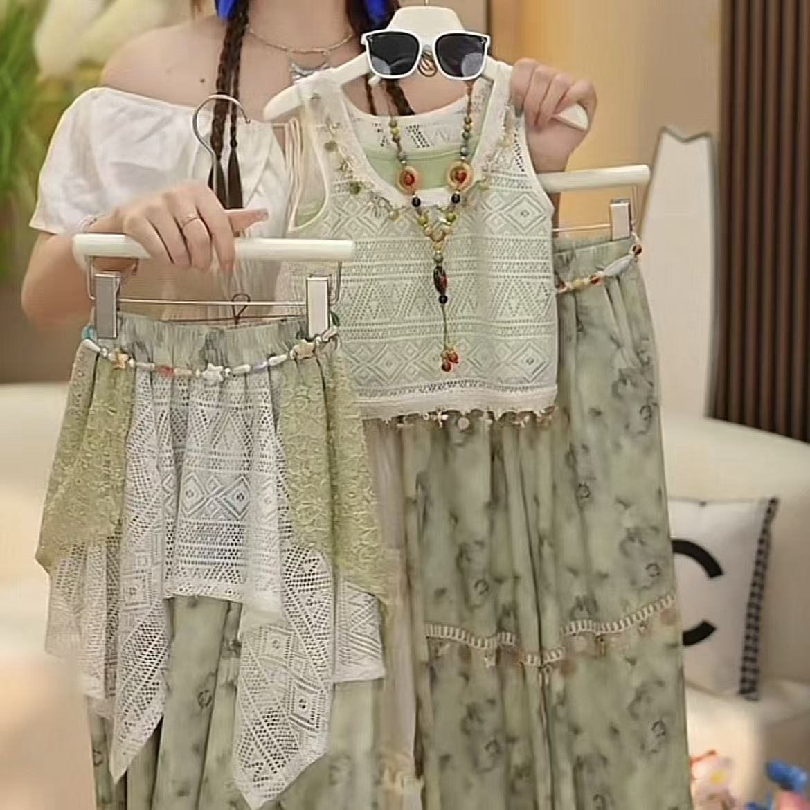 소녀 카미솔 스커트 여름 2025 새로운 도착 세트 빈 외국 스타일 시메아 불규칙한스토어 가기
