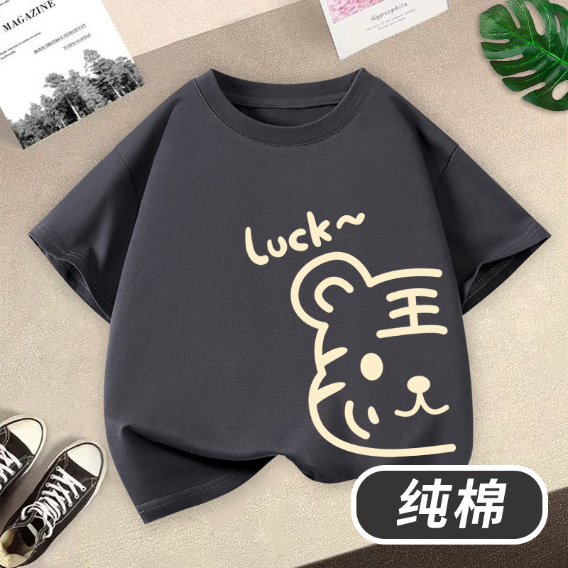 아동복 소년 반팔 티셔츠 2025 새로운 소년 크루 넥 풀오버 느슨한 여름 통기성 어린이 면화 탑스토어 가기