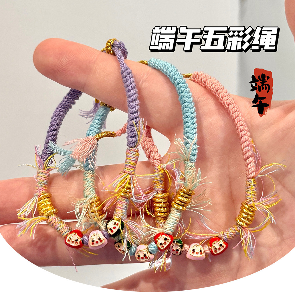 드래곤 보트 축제 다채로운 로프 팔찌 어린이 귀여운 작은 zongzi 5 색 라인 짠 손 로프 성인 팔찌 보석 도매