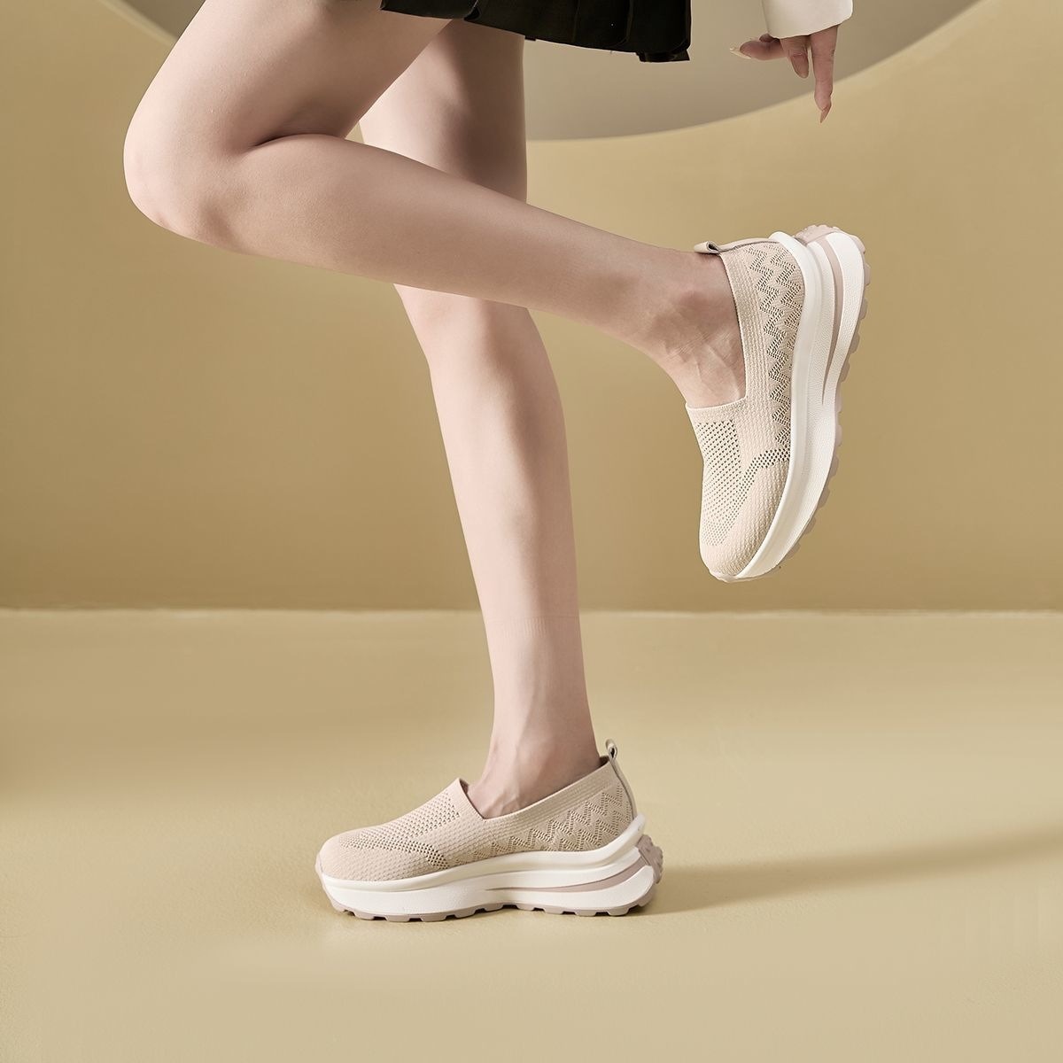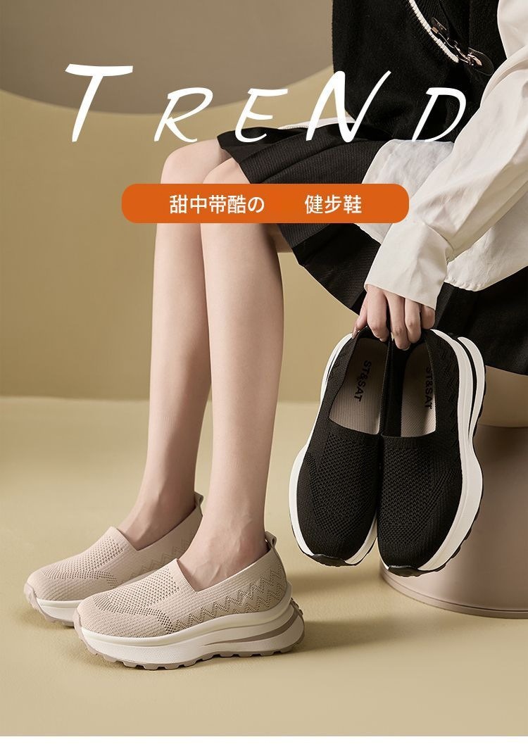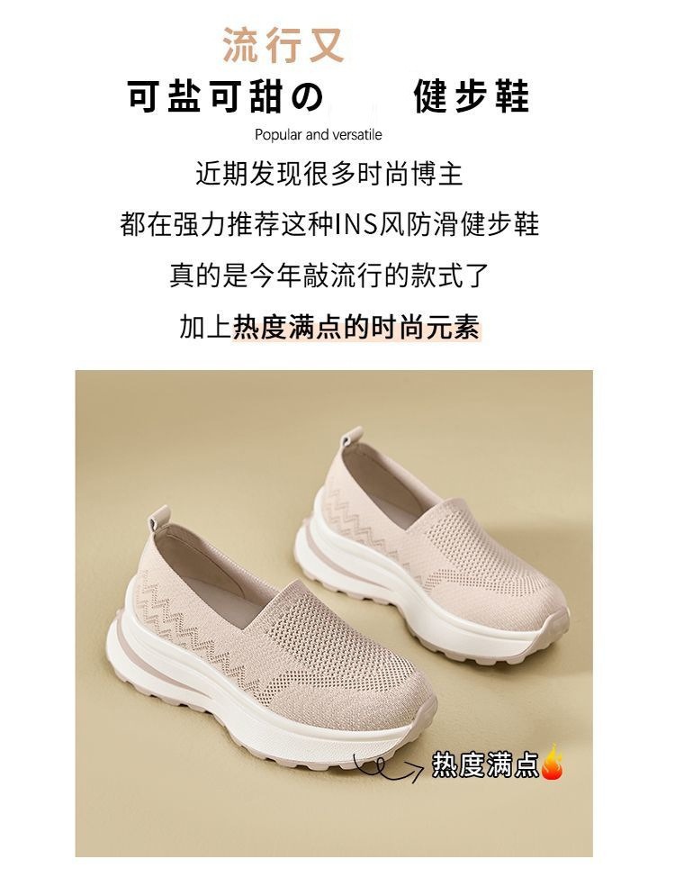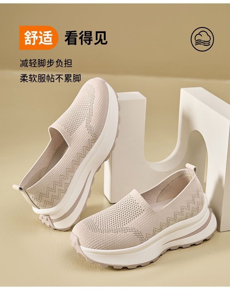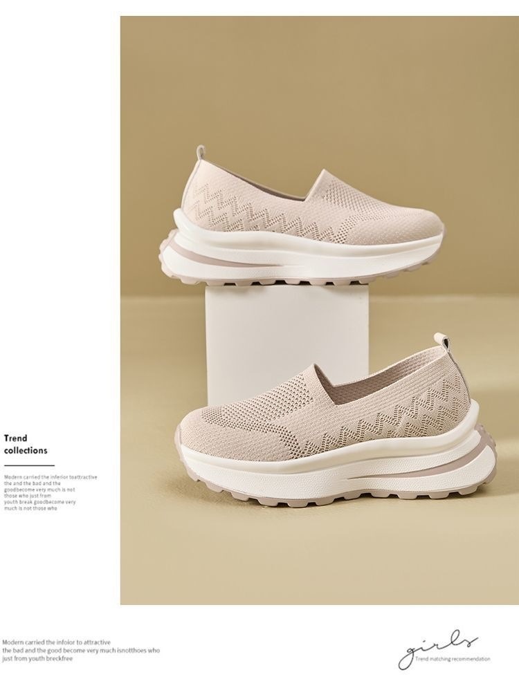 여성 신발 메쉬 통기성 운동화 간단한 두꺼운 밑창 스포츠 캐주얼 신발 육체 훈련 신발 여성용 중공 슬립 온 신발스토어 가기