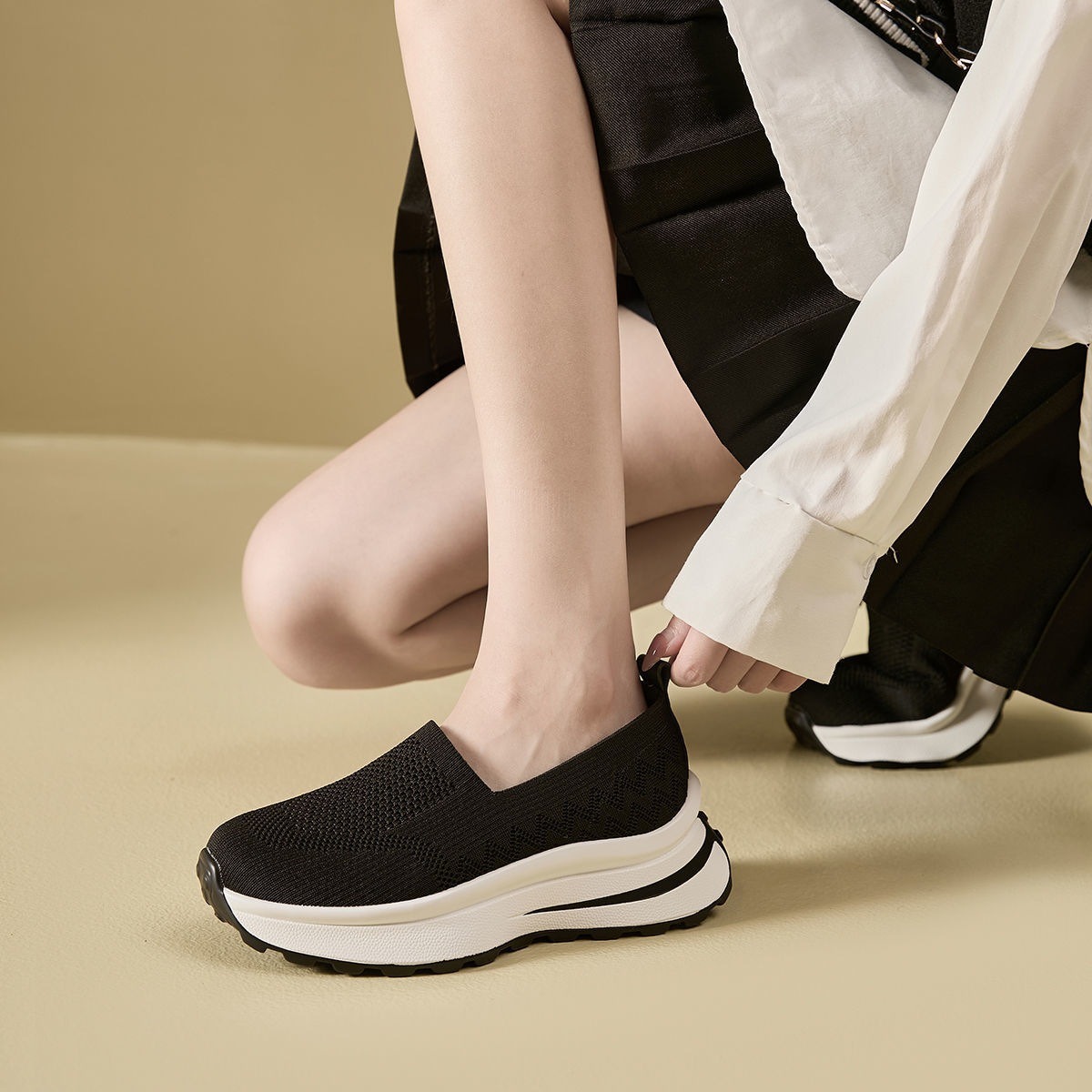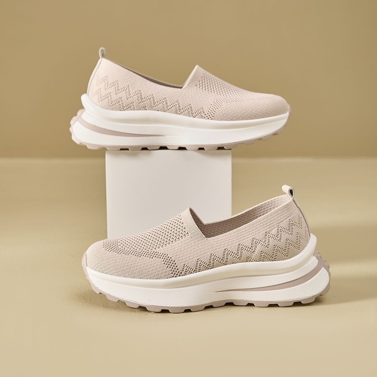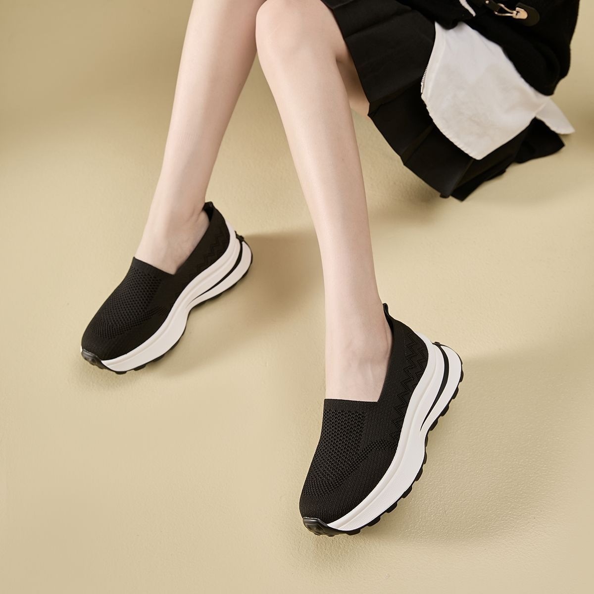여성 신발 메쉬 통기성 운동화 간단한 두꺼운 밑창 스포츠 캐주얼 신발 육체 훈련 신발 여성용 중공 슬립 온 신발스토어 가기