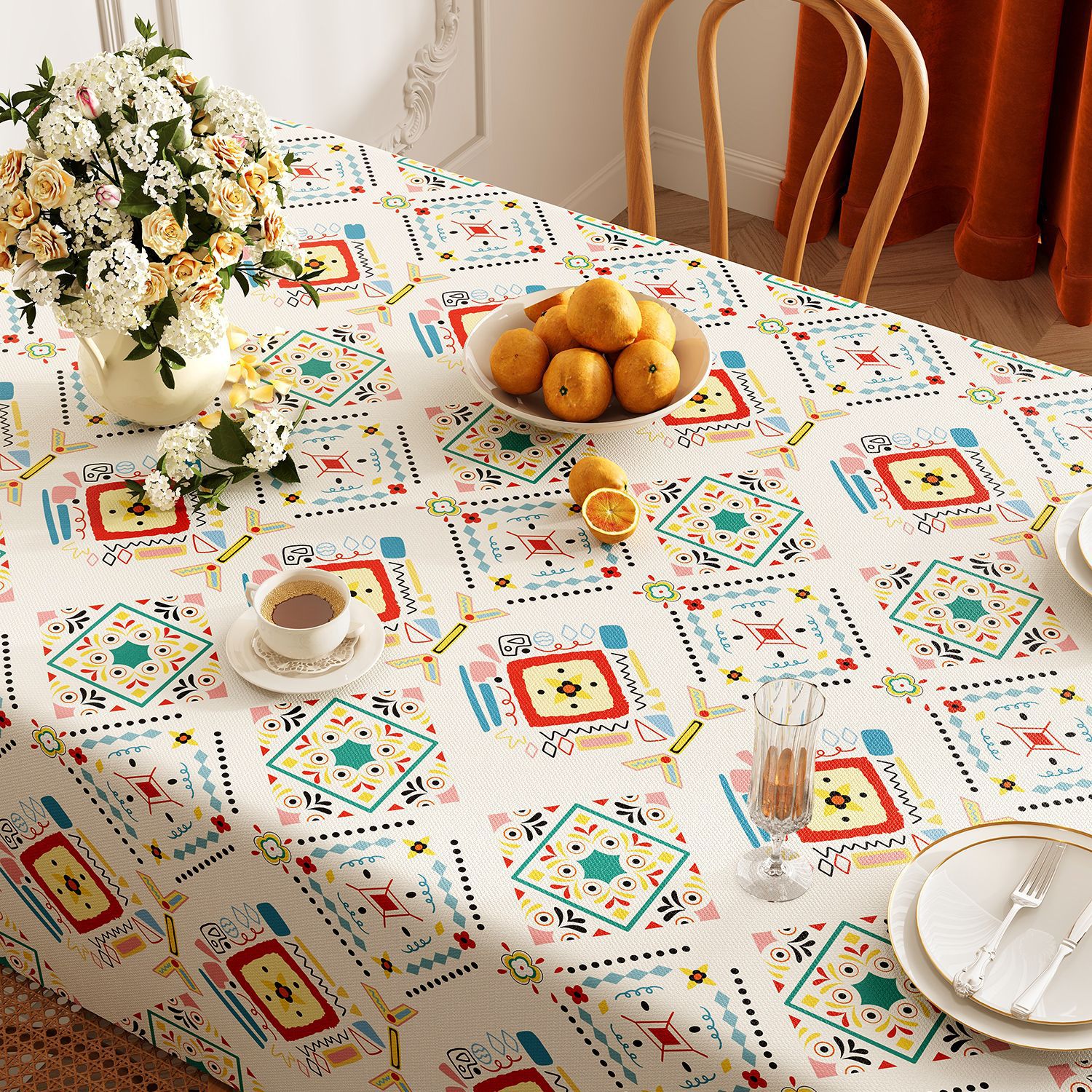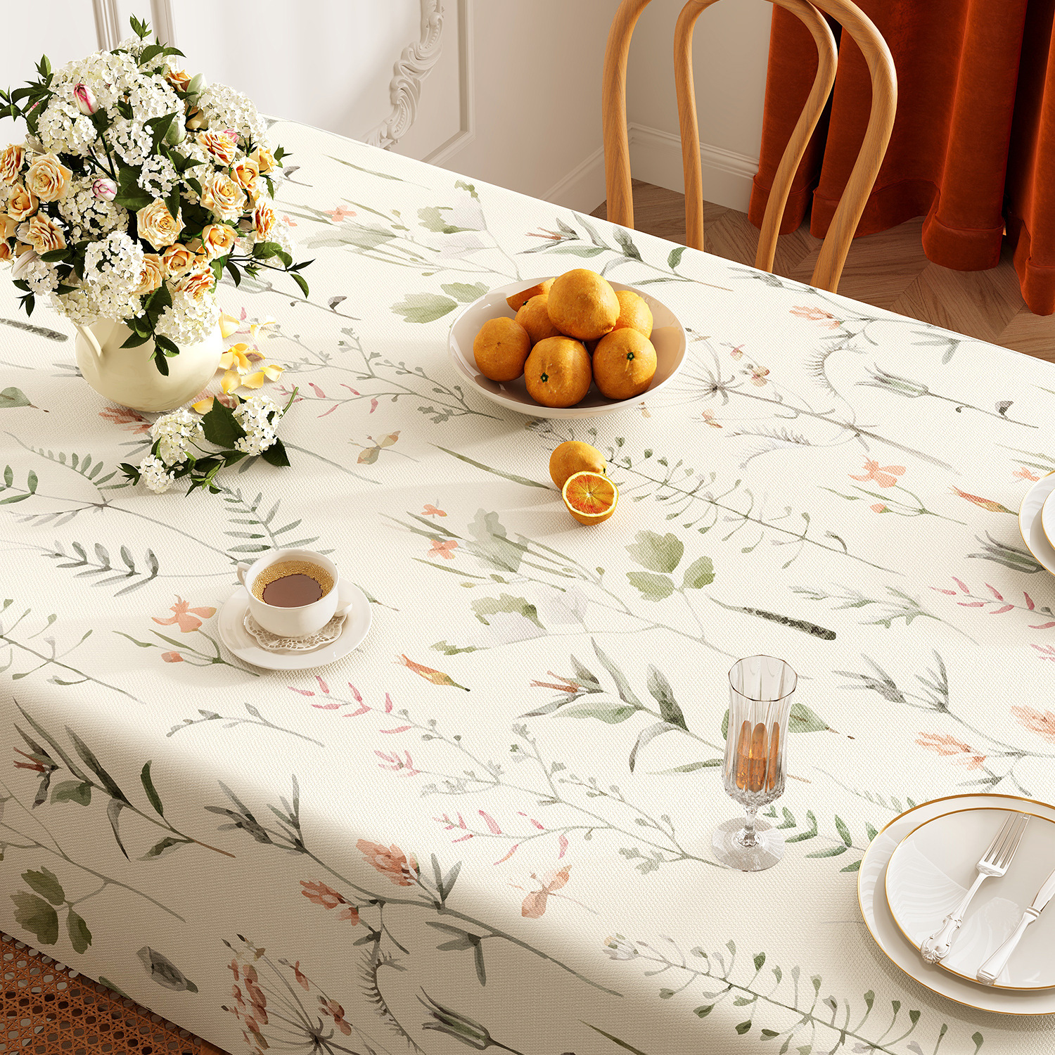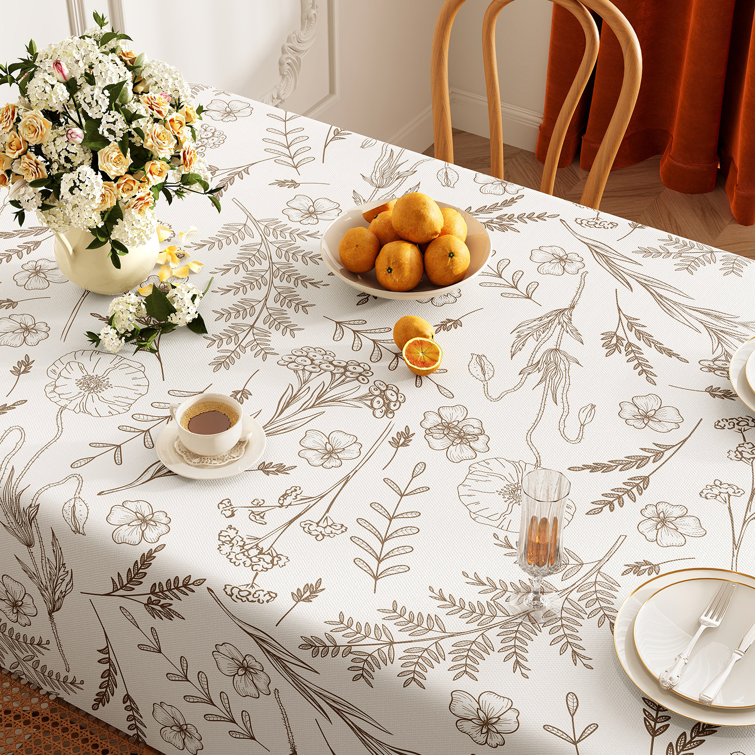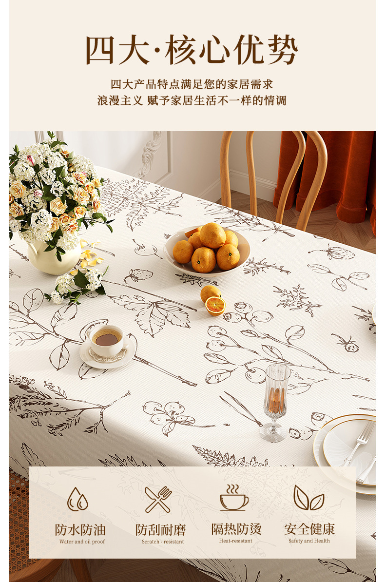 미국 목가적 인 스타일의 식탁보 방수 및 내유성 처분할 수있는 고급 고급 고급 식탁 용 PVC 직사각형 커피 테이블 테이블 테이블 테이블 천스토어 가기