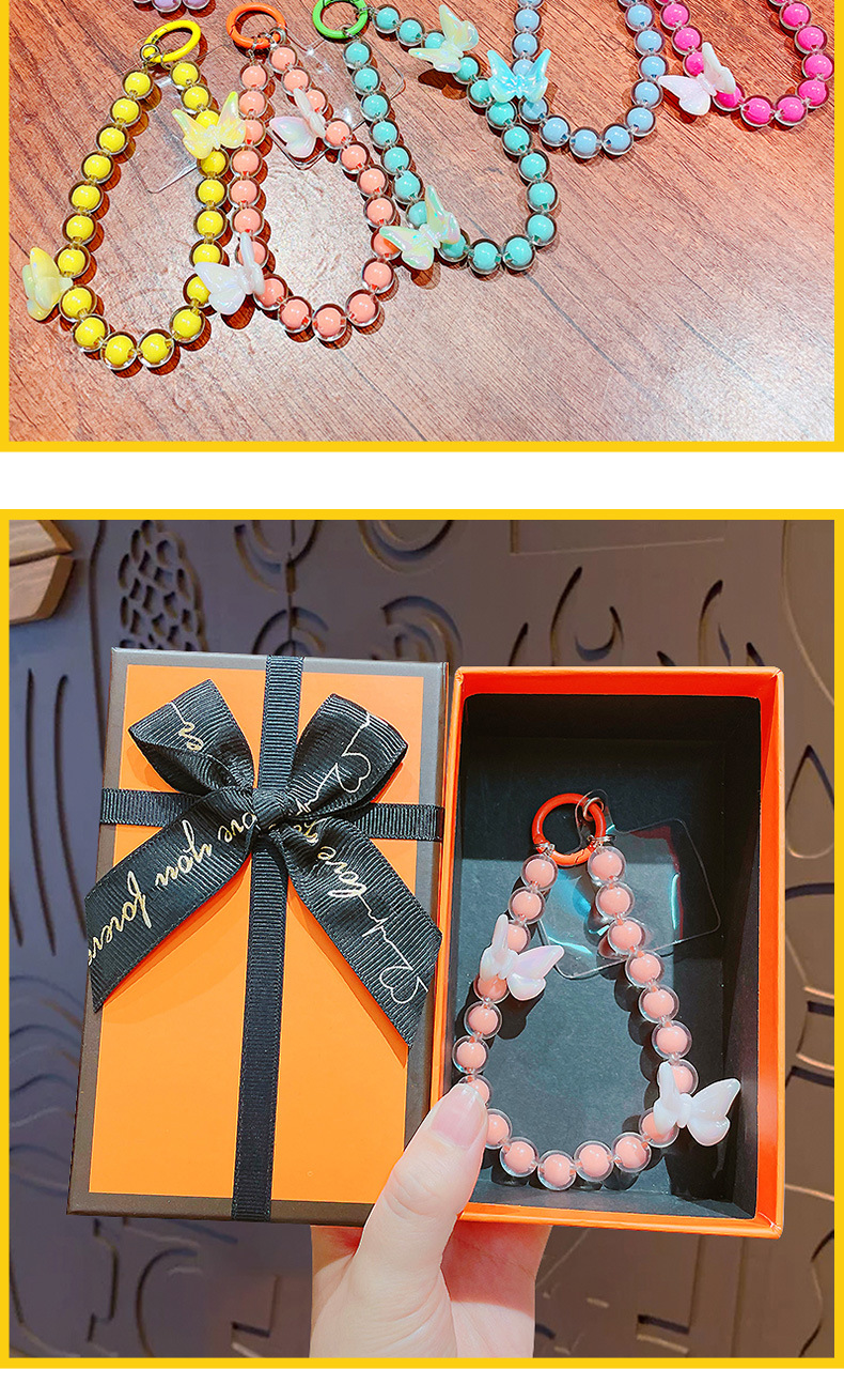 • 작은 나비 비즈 휴대폰 비즈 체인 - 오렌지
