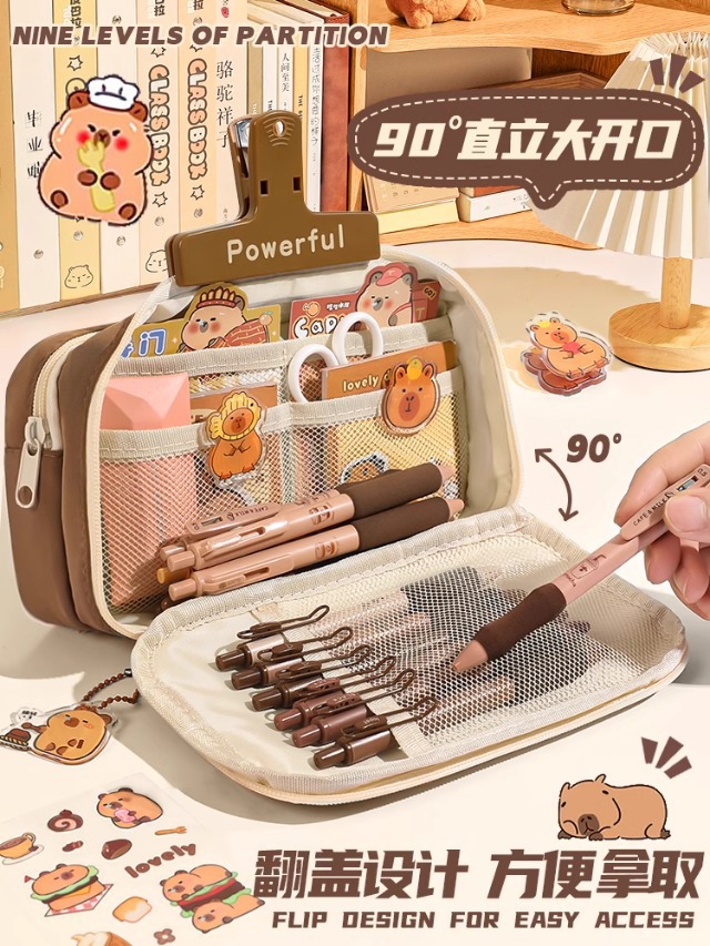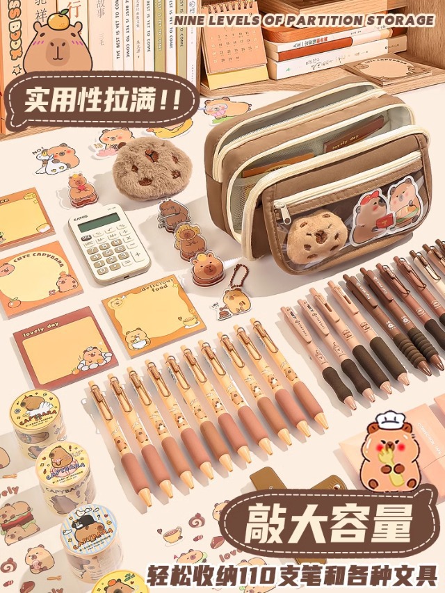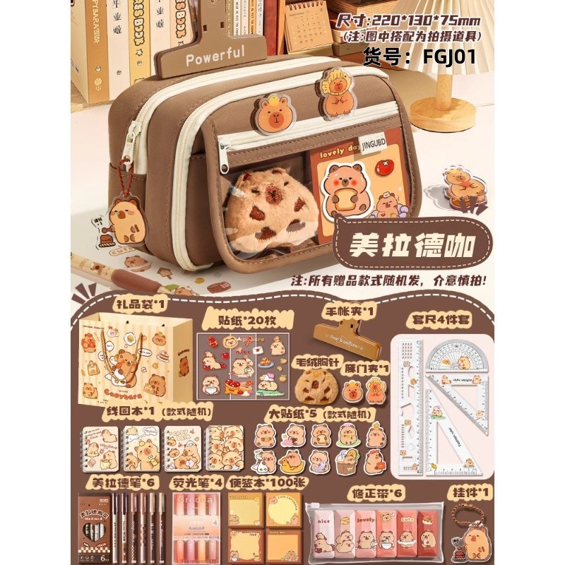 • 상품번호 : FGJ010 [9단 커피필통 + 펜던트 + 클립 + 메모지 100장 + 카피발라 브로치 + 스티커 21장