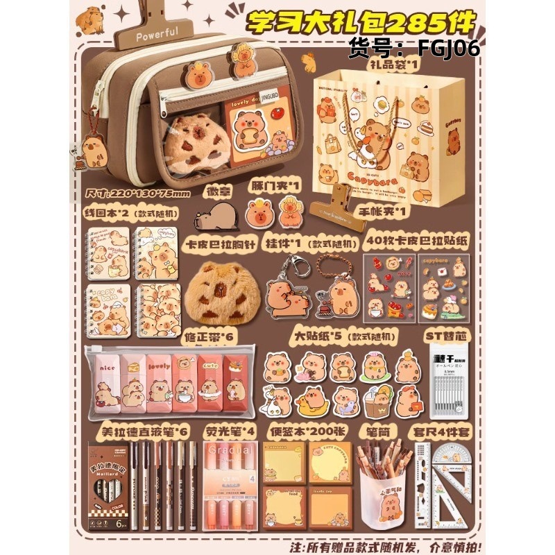 • 품목 번호: FGJ06 [285개] 커피 컬러 + 선물 가방 + 코일북 2개 + 수정 테이프 6개 + 펜 6개 + 형광펜 4개 + 자 4세트 + 리필 10개 + 펜 홀더 +