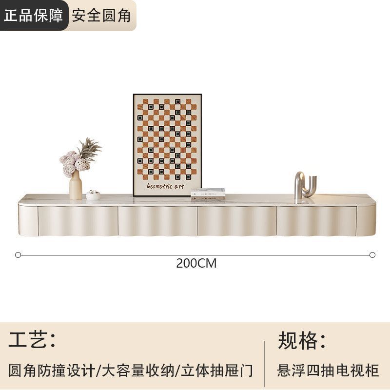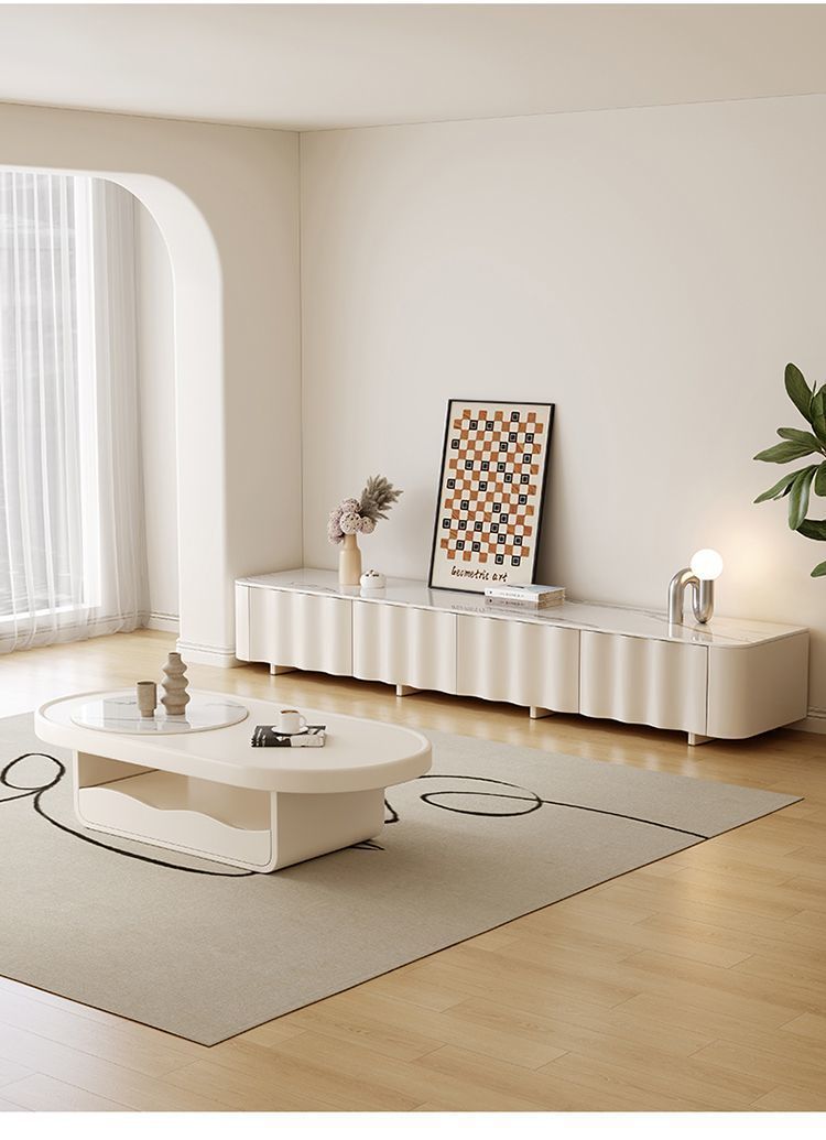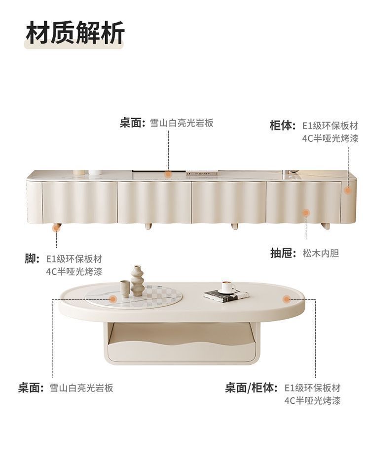 크림 스타일 흰색 슬레이트 커피 테이블 TV 캐비닛 조합 가정용 작은 거실 어린이를위한 현대 간단한 스토리지 캐비닛