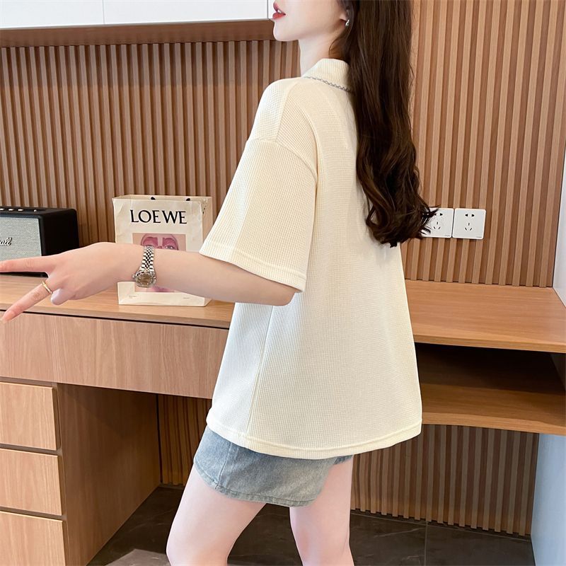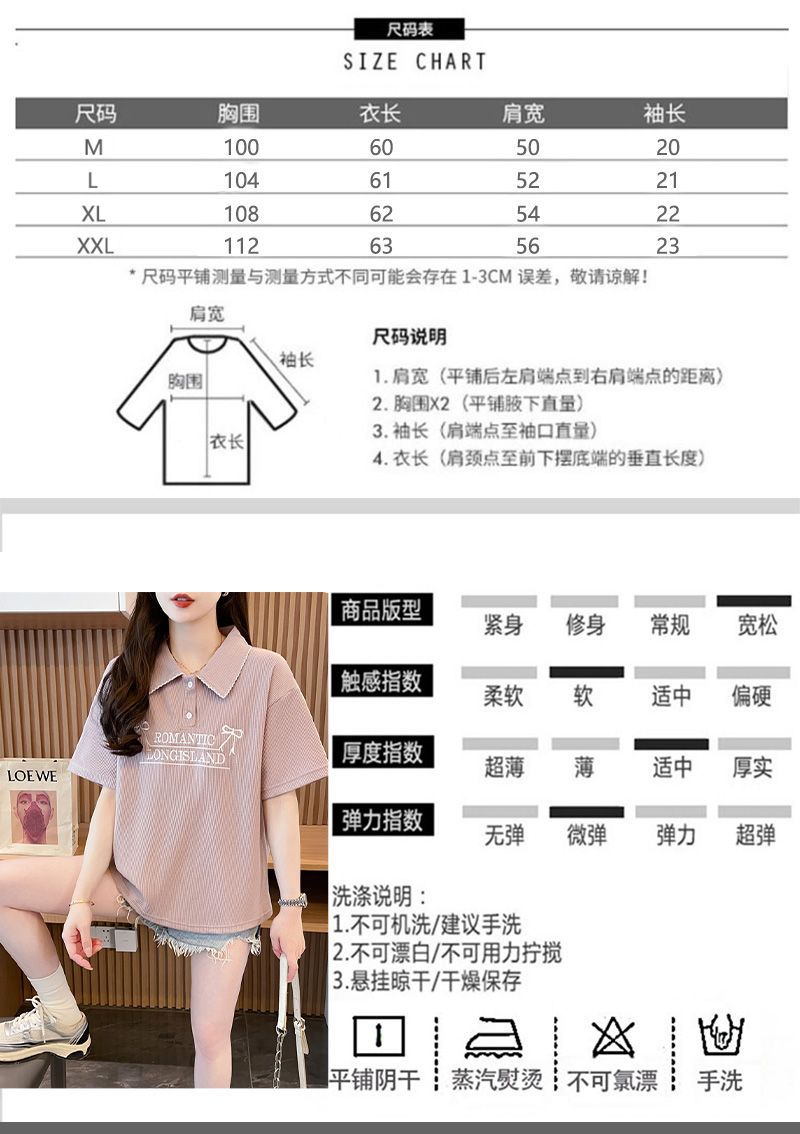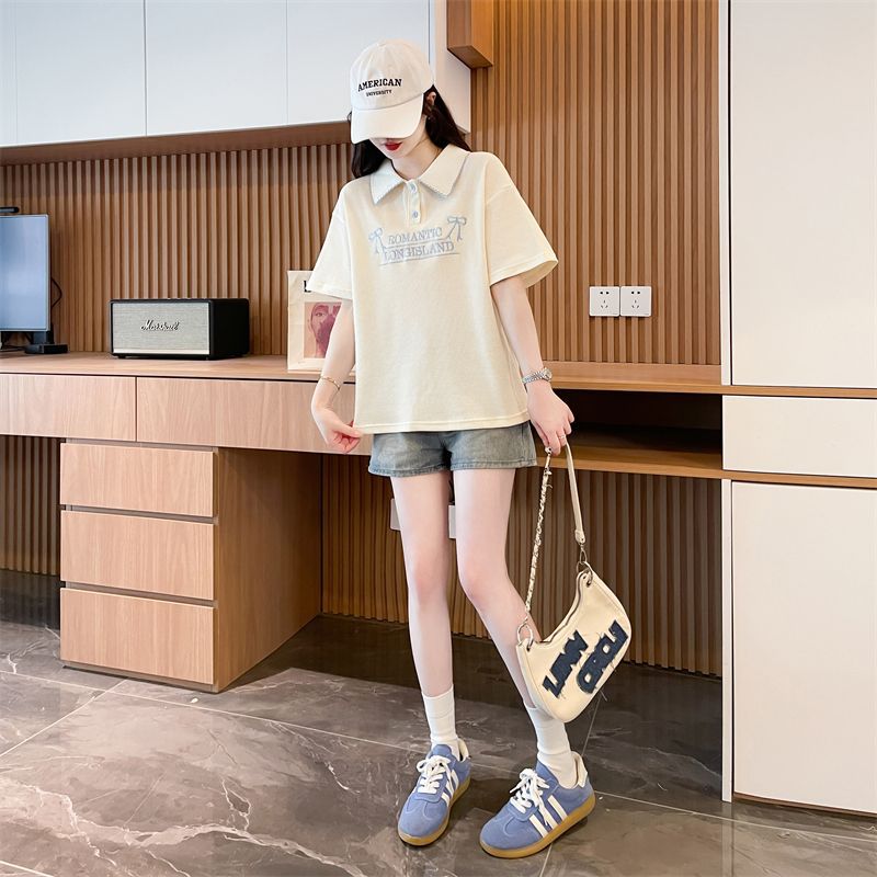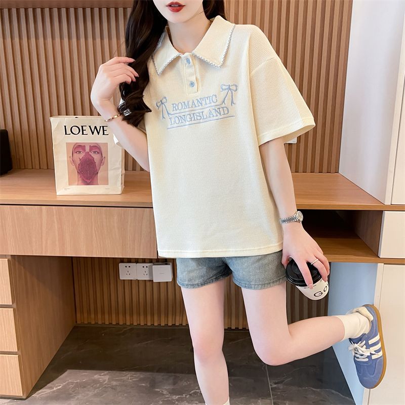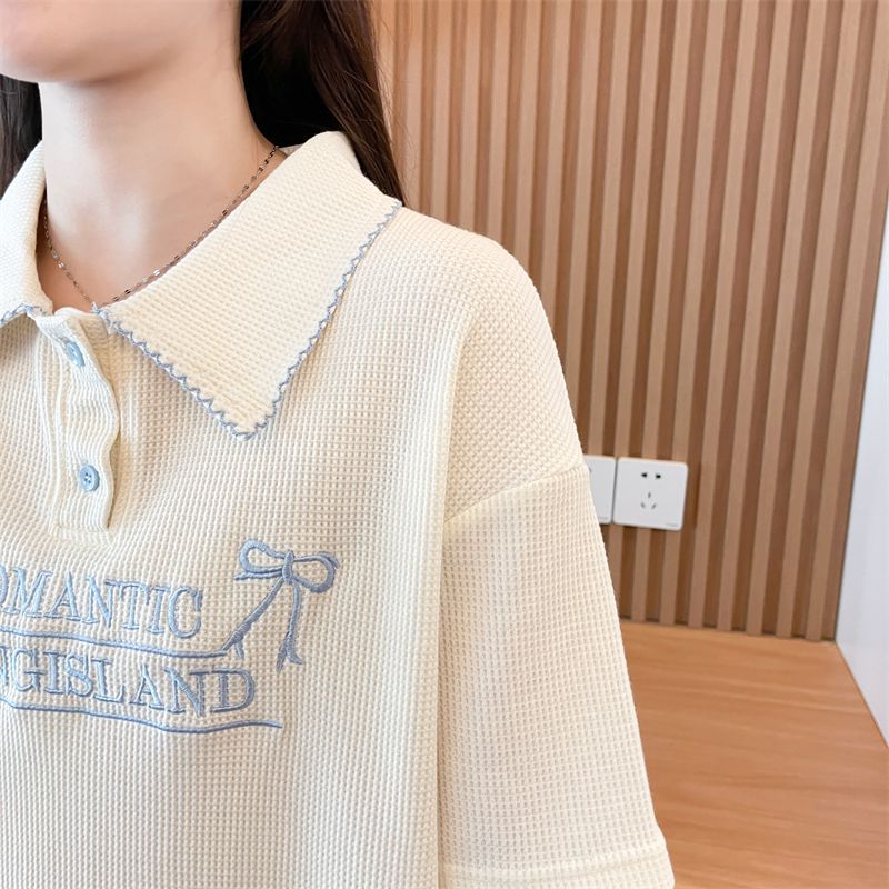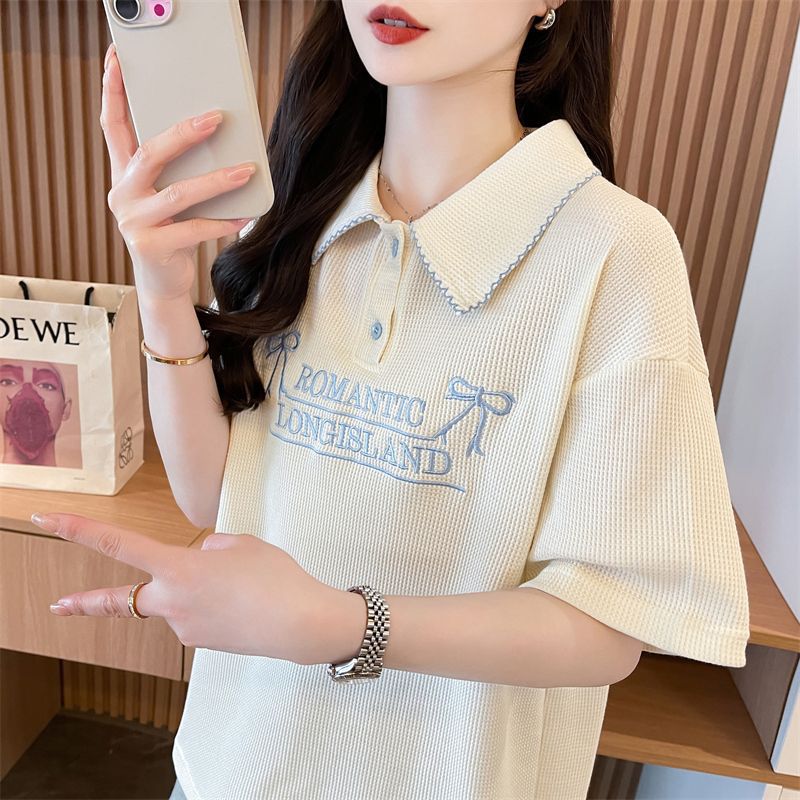 옷깃 폴로 셔츠 반팔 티셔츠 여자 2025 년 새 여름 한국식 느슨한 활 자수 올매치 탑