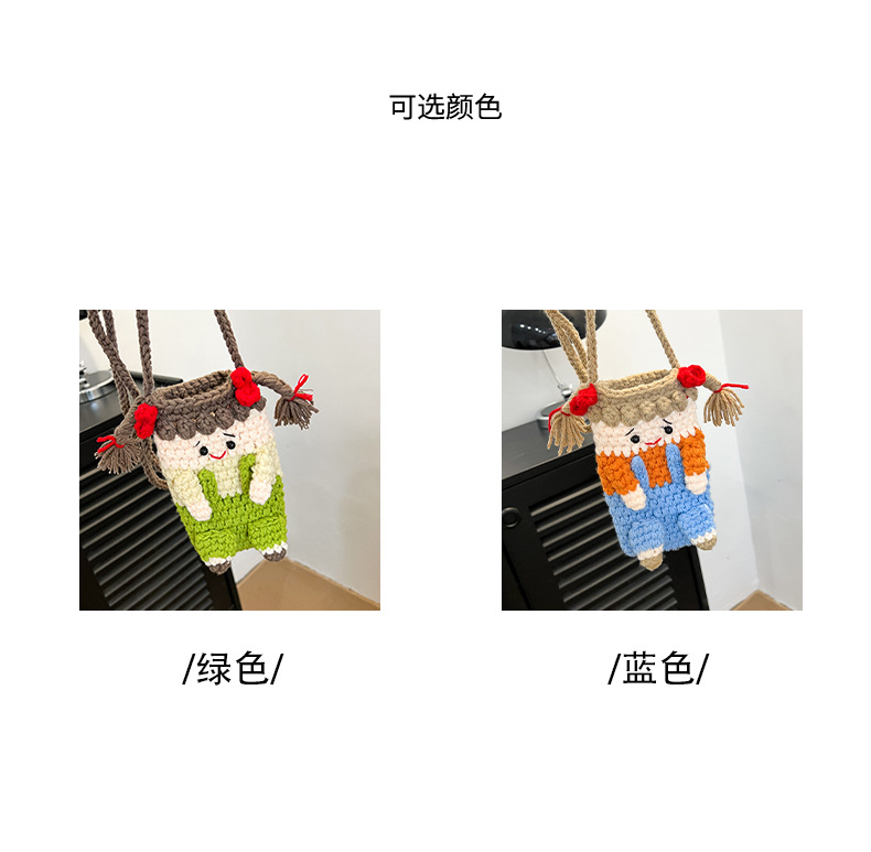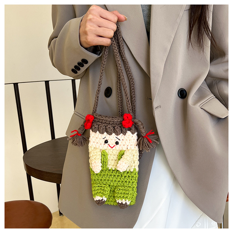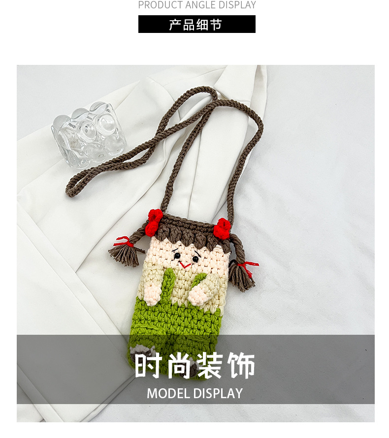 손으로 짠 완제품 휴대폰 가방, 모직 니트 동전 지갑, 크로스백, 여성용 니트 귀여운 만화 휴대폰 가방스토어 가기