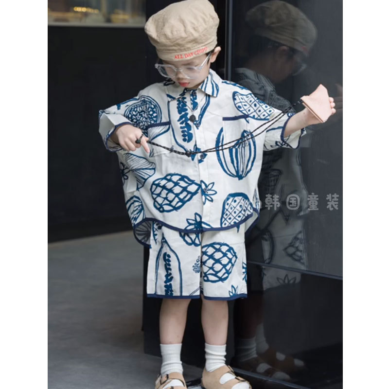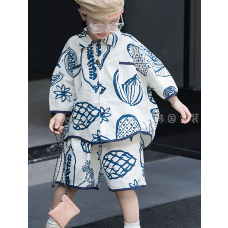 소년의 봄과 여름 세트 새로운 어린이 꽃 셔츠 튀김 거리 리퍼 잘 생긴 젊은 마스터의 두 조각 해변 착용 유행 어린이 세트스토어 가기