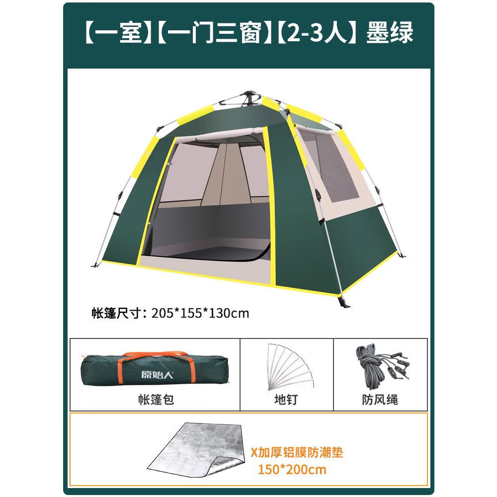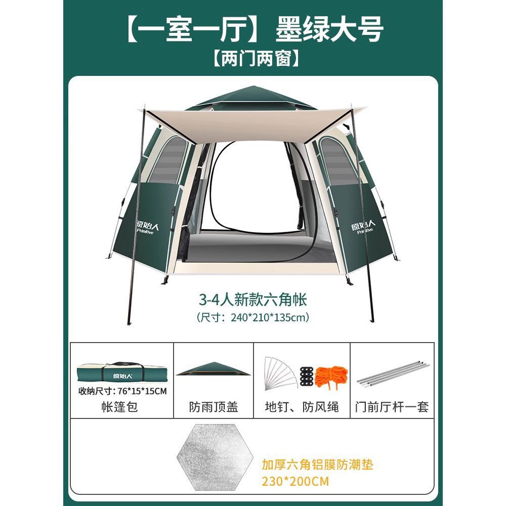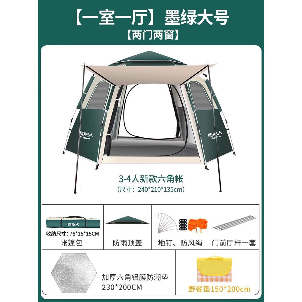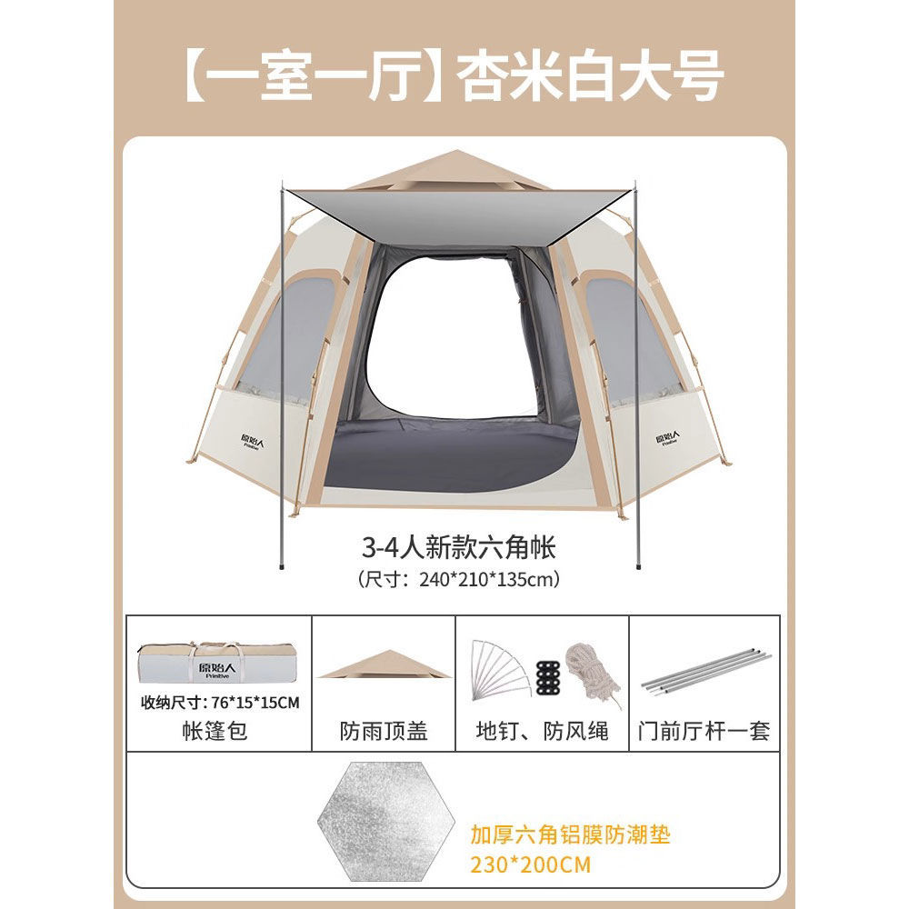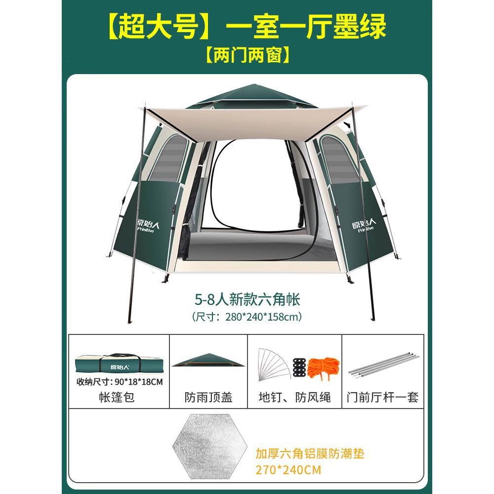 원시적 인 남자 캠핑 텐트 야외 접이식 휴대용 캠핑 밤새 비가 내리는 전체 세트의 자동 빠른 열기