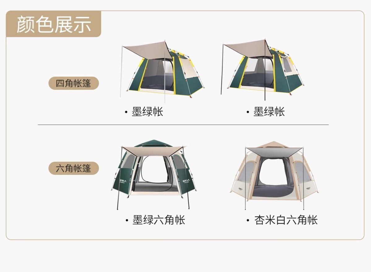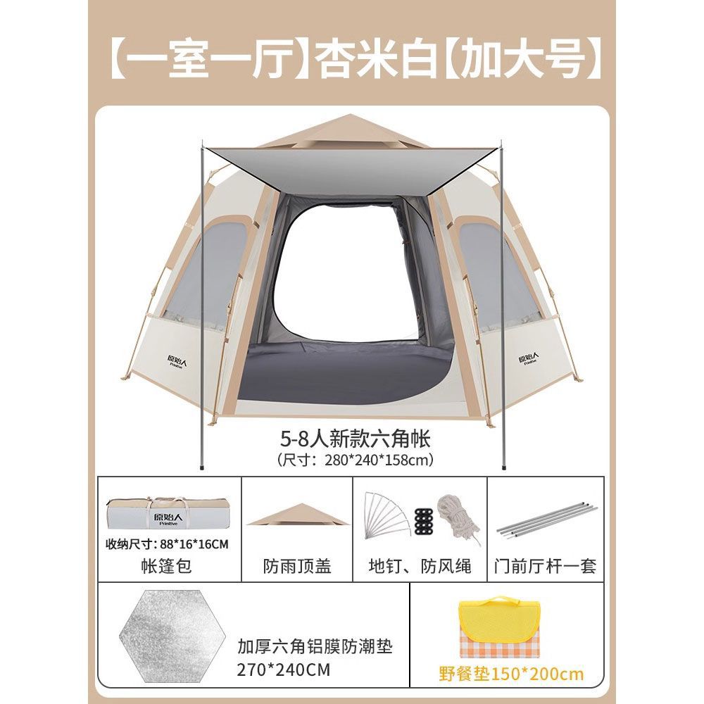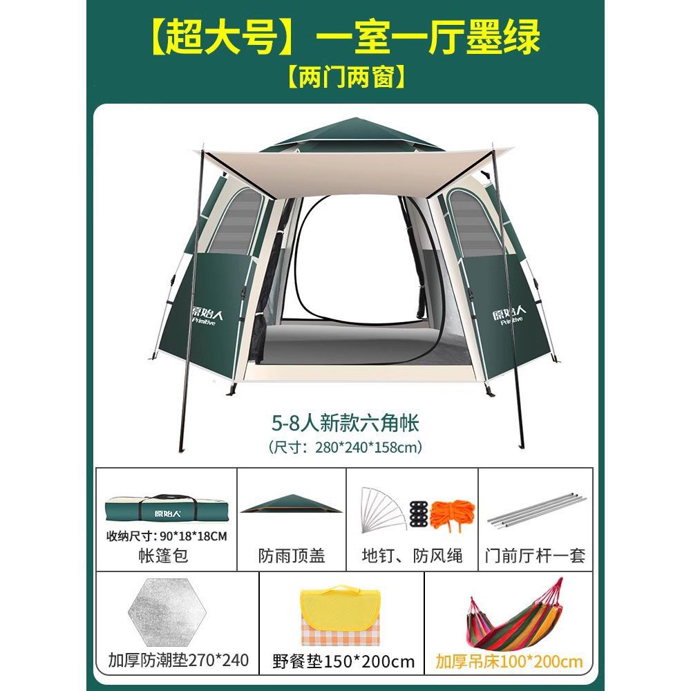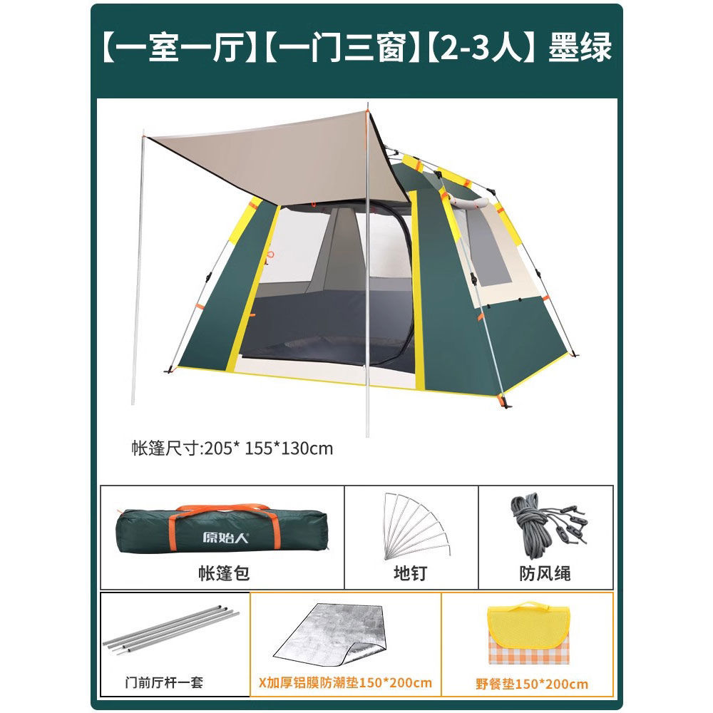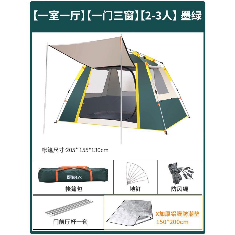원시적 인 남자 캠핑 텐트 야외 접이식 휴대용 캠핑 밤새 비가 내리는 전체 세트의 자동 빠른 열기