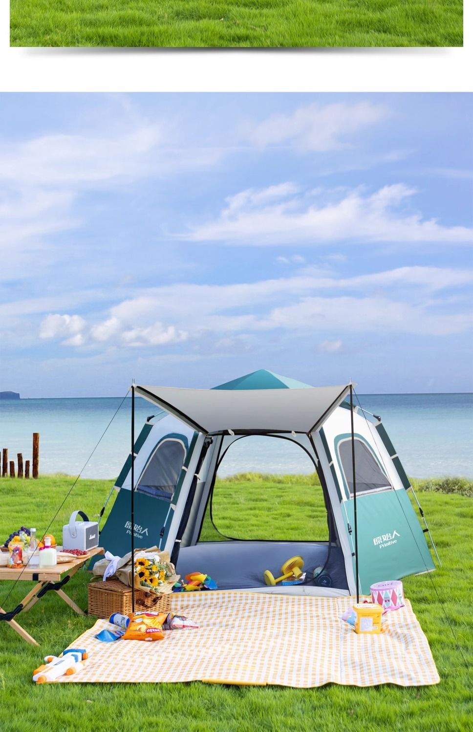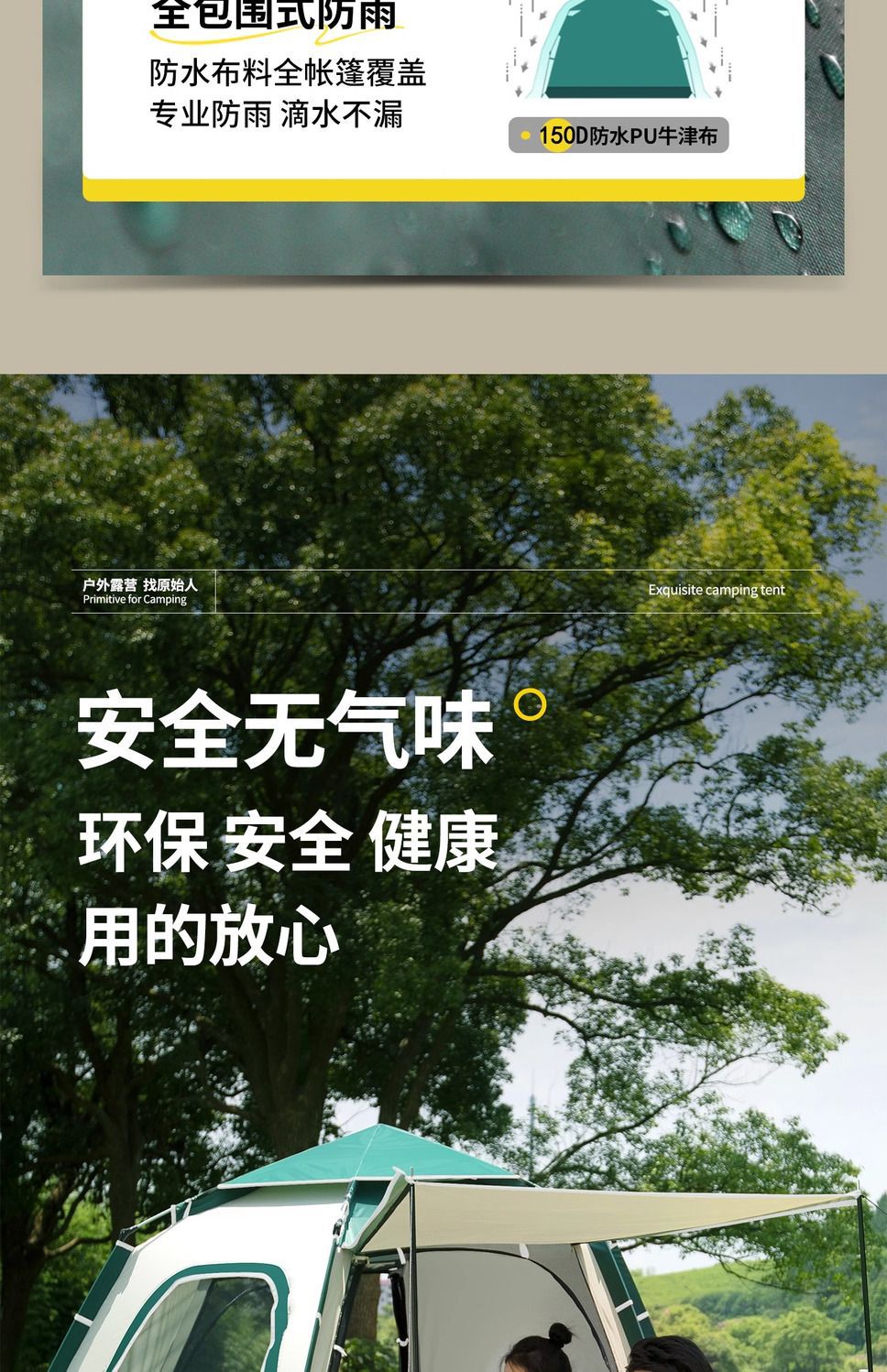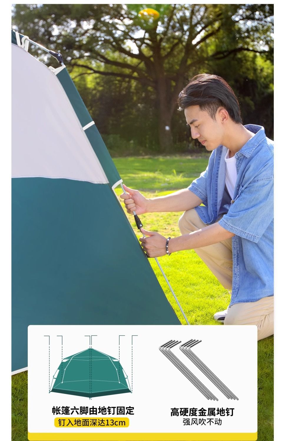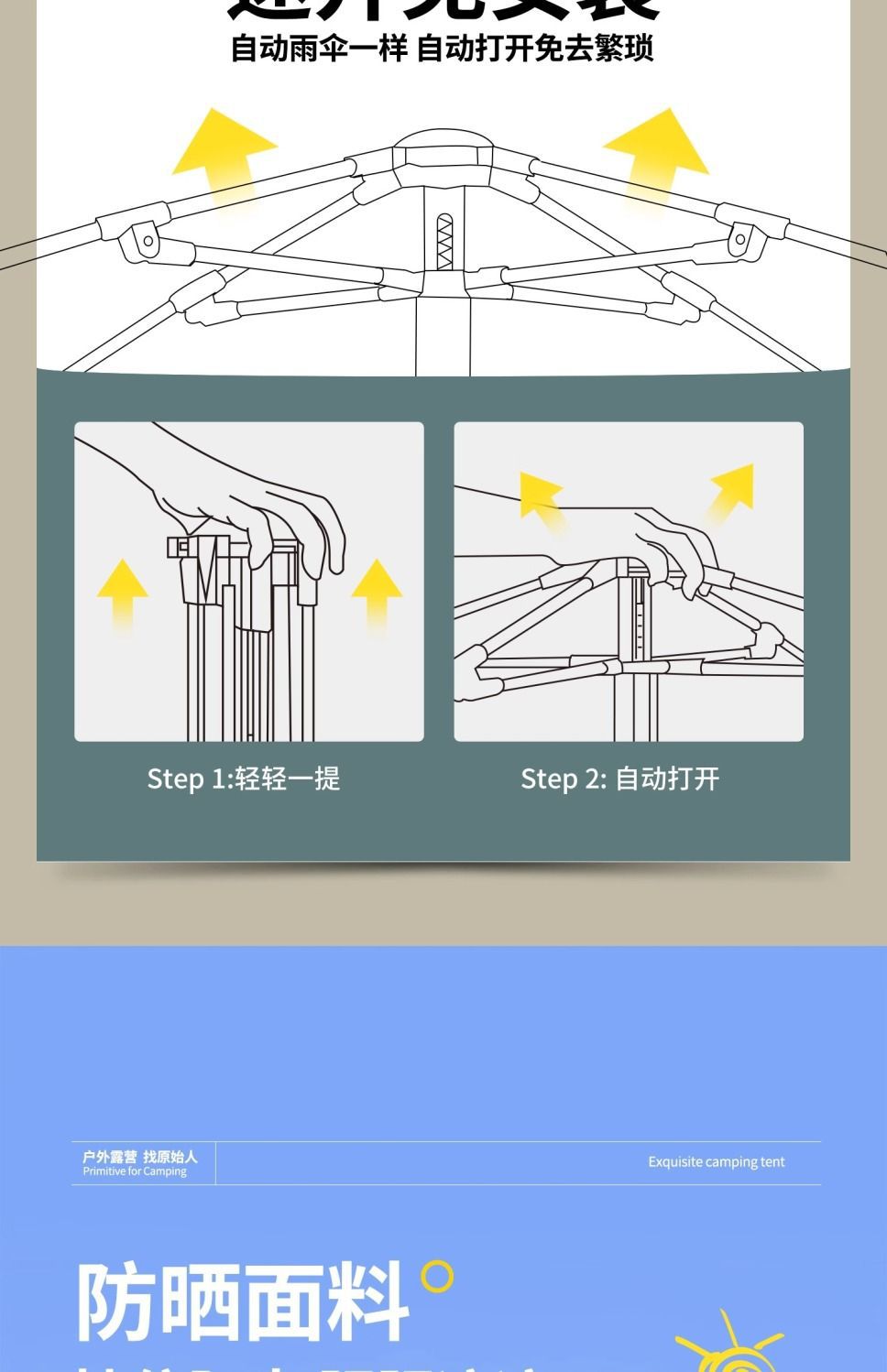 원시적 인 남자 캠핑 텐트 야외 접이식 휴대용 캠핑 밤새 비가 내리는 전체 세트의 자동 빠른 열기
